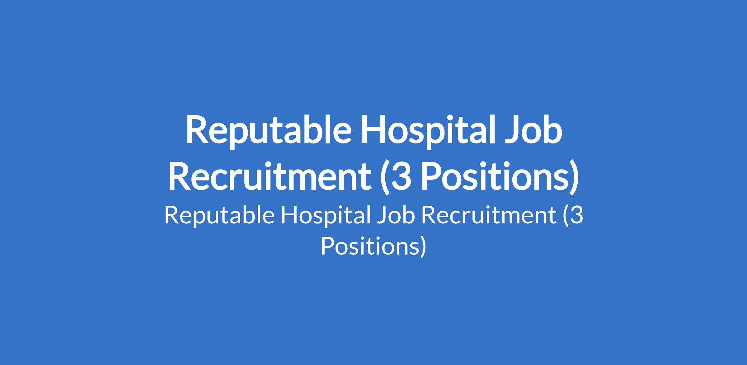 Reputable Hospital Job Recruitment (3 Positions)