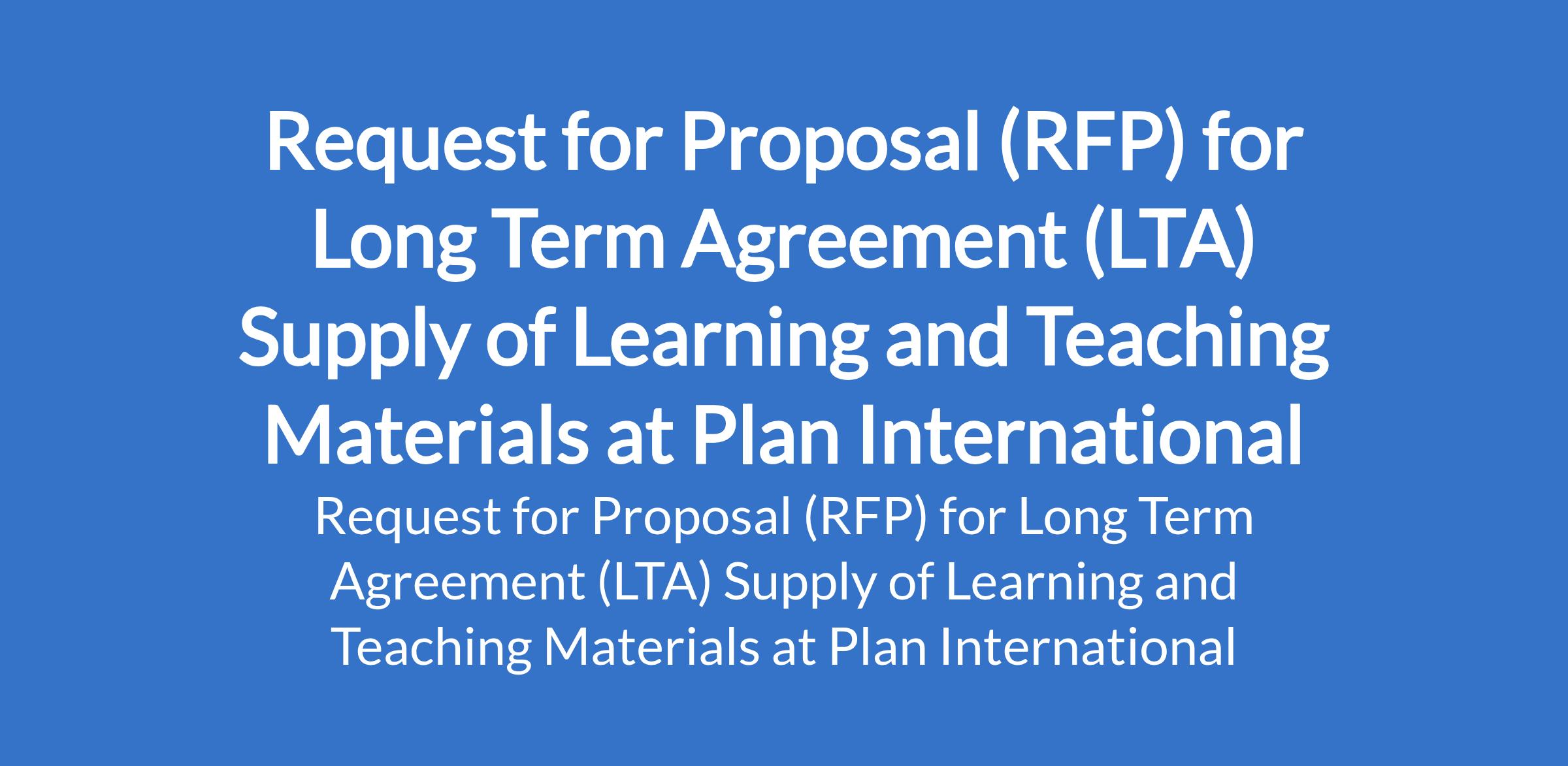 Request for Proposal (RFP) for Long Term Agreement (LTA) Supply of Learning and Teaching Materials at Plan International