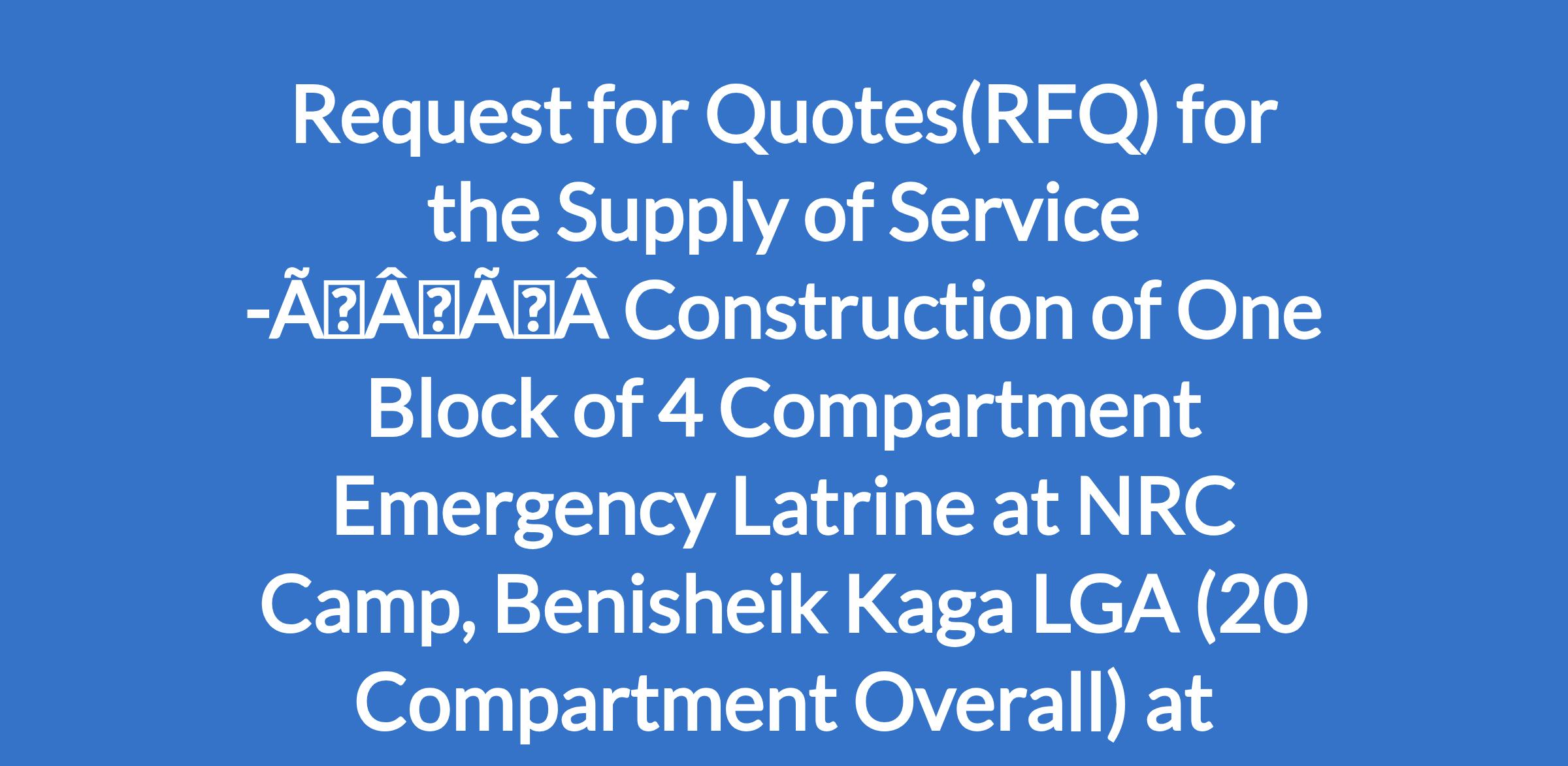 REQUEST FOR QUOTES (RFQ) FOR THE SUPPLY OF SERVICE- CONSTRUCTION OF ONE BLOCK OF 4 COMPARTMENT EMERGENCY LATRINE AT NRC CAMP, BENISHEIK KAGA LGA (20 COMPARTMENTS OVERALL) AS INDICATED ON THE ATTACHED BOQ