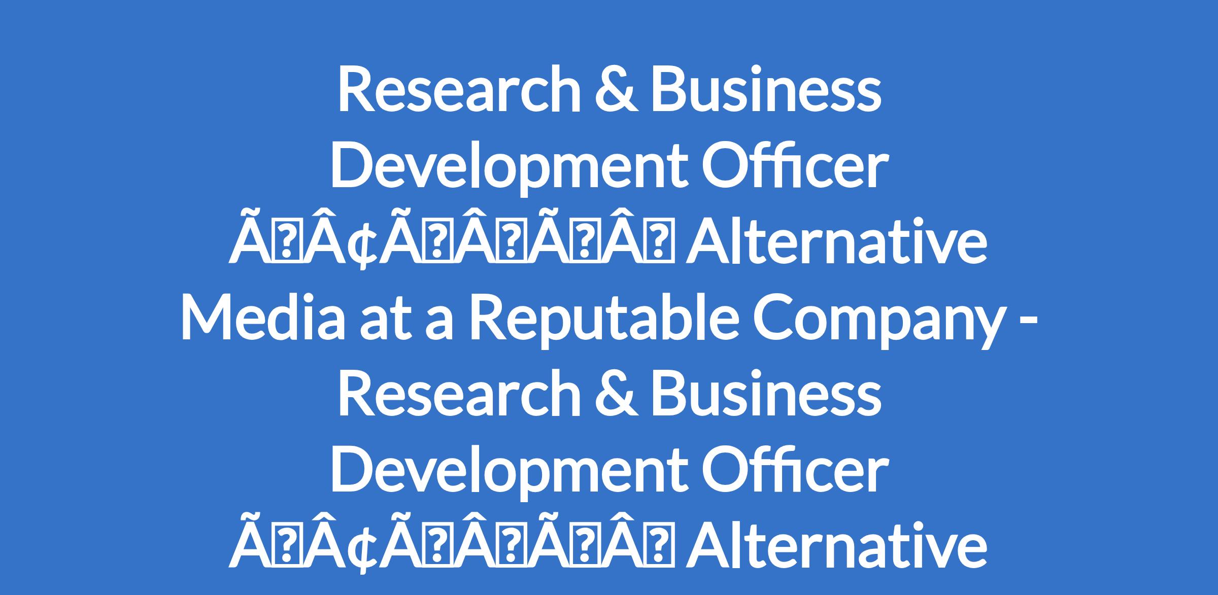 Research & Business Development Officer âÃÂàAlternative Media at a Reputable Company - Research & Business Development Officer âÃÂàAlternative Media