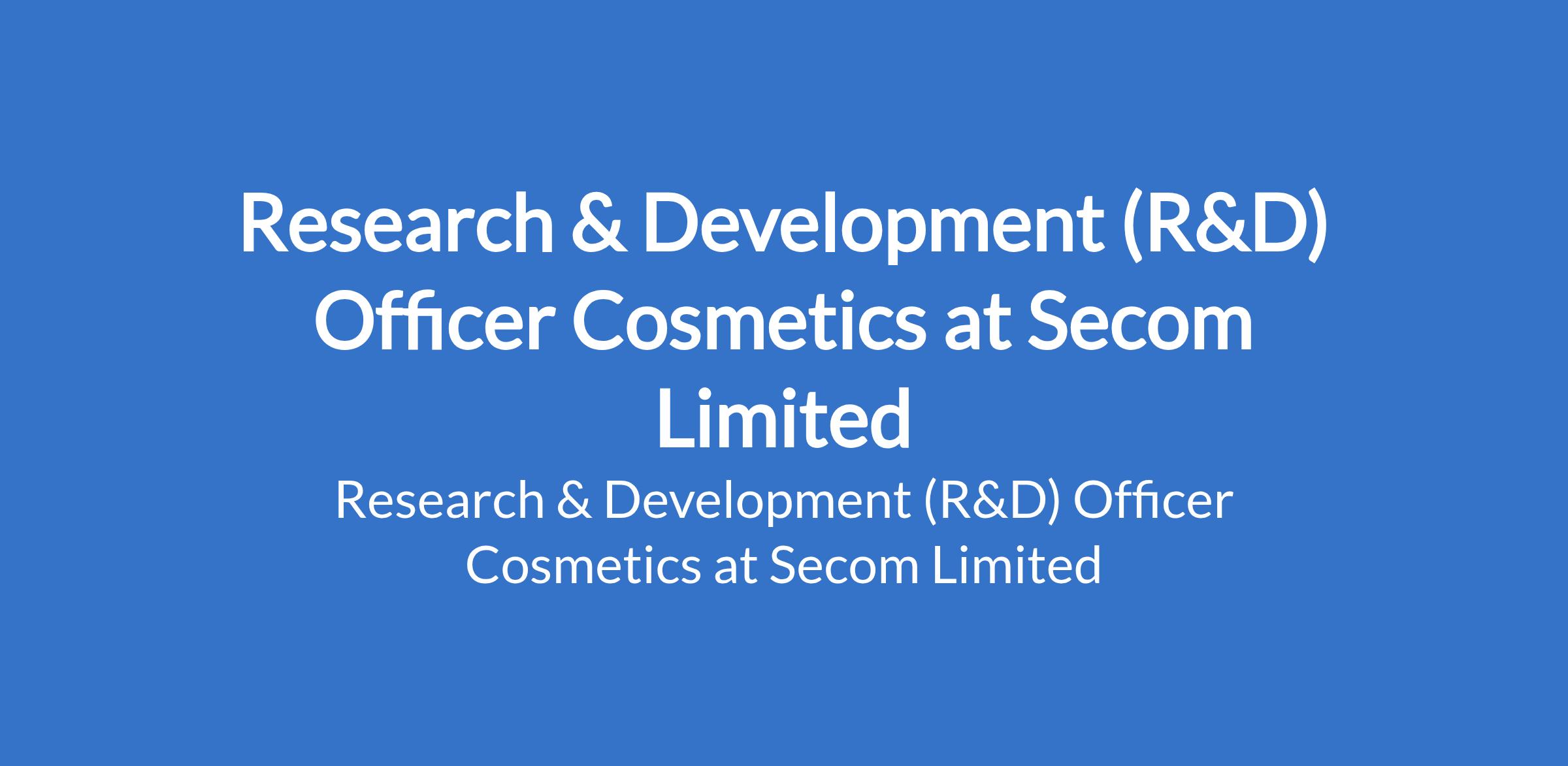 Secom Limited is recruiting to fill the position of: Research & Development (R&D) Officer Cosmetics. The position is located in Lagos State. Salary: N150,000 monthly. Interested candidates should possess a BSc in Science-related discipline (e.g., Chemistry, Biochemistry, Microbiology, Industrial Chemistry, or related fields) with 1 2 years relevant experience in cosmetic formulation, R&D, or laboratory work must be proximate to Sabo, Yaba.