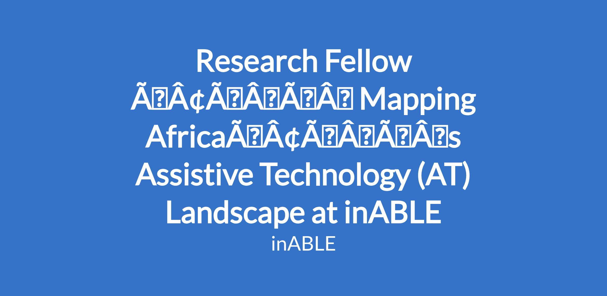 Research Fellow âÃÂàMapping AfricaâÃÂÃÂs Assistive Technology (AT) Landscape at inABLE