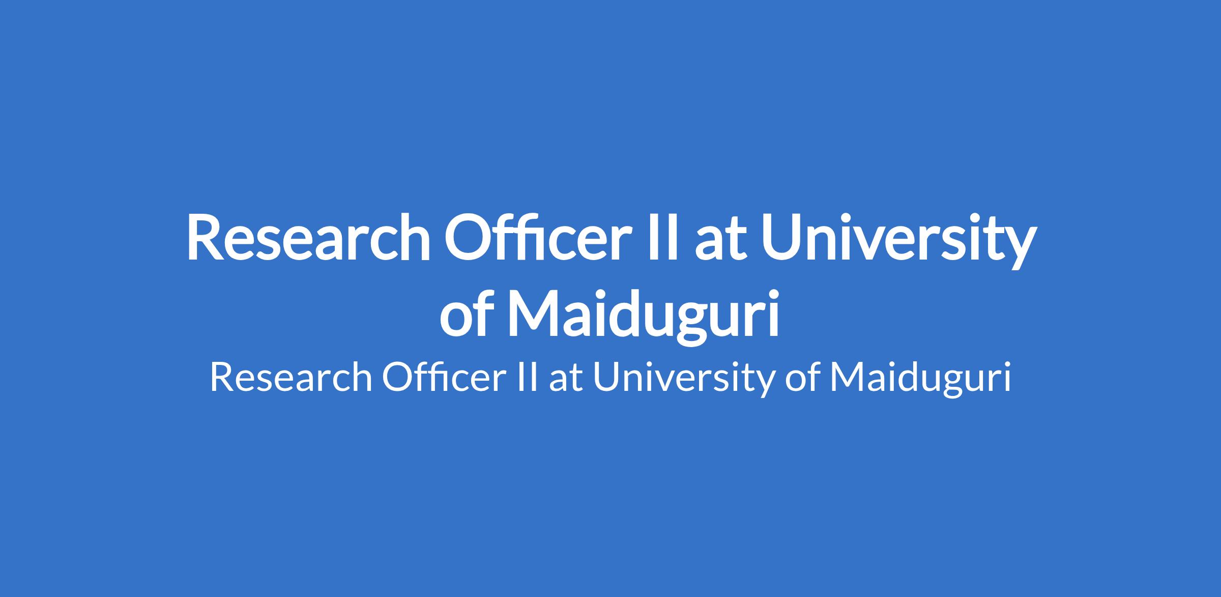 University of Maiduguri invites applications from suitable candidates to fill the position of: Research Officer II. The position is located in Borno State. Interested candidates should possess a BA/B.Sc. in Sciences or Humanities from a recognised institution with relevant work experience.