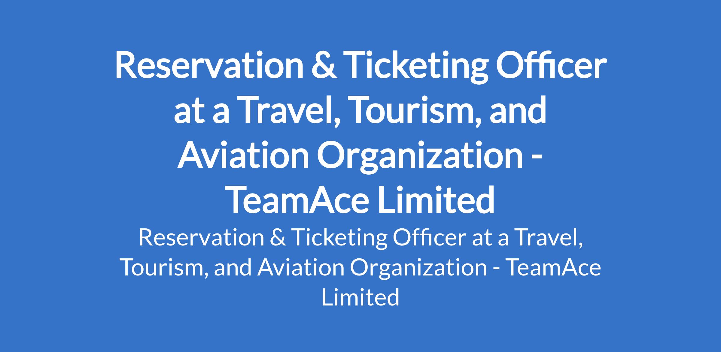 TeamAce Limited - Our client, a reputable organization in the travel, tourism, and aviation services sector is recruiting to fill the position of: Reservation & Ticketing Officer. The position is located in Ikoyi, Lagos State. Salary: N150,000 - N170,000 per month. Interested candidates should possess a Bachelors Degree or HND; smart and trainable graduate.