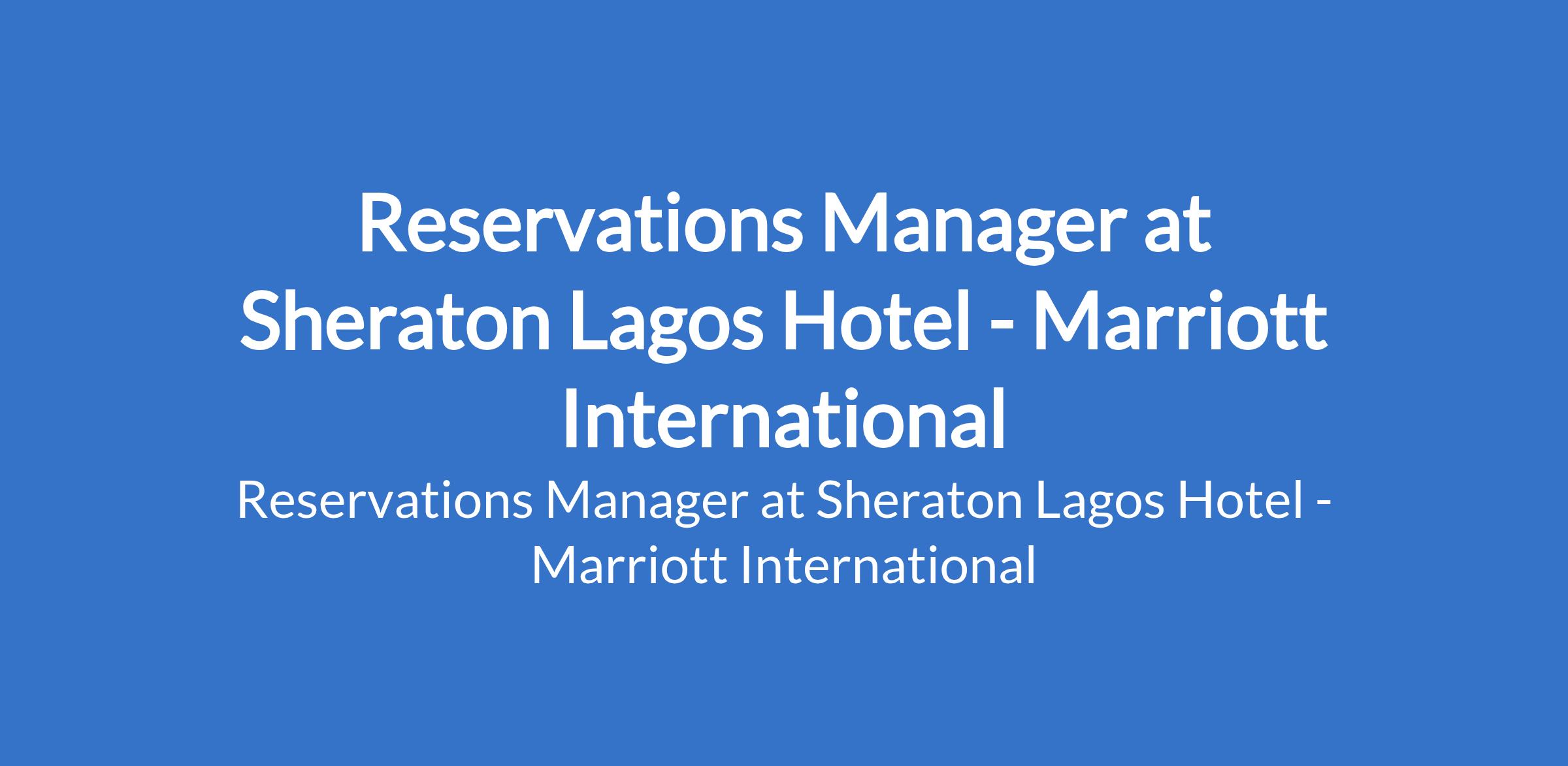 Sheraton Lagos Hotel, a subsidiary of Marriott International is recruiting to fill the position of: Reservations Manager. Interested candidates should possess a High school Diploma or GED; no work experience Or 2-year Degree in Business Administration, Marketing, Hotel and Restaurant Management, or related major with 2 years experience in the sales and marketing, guest services, front desk, or related professional area.
