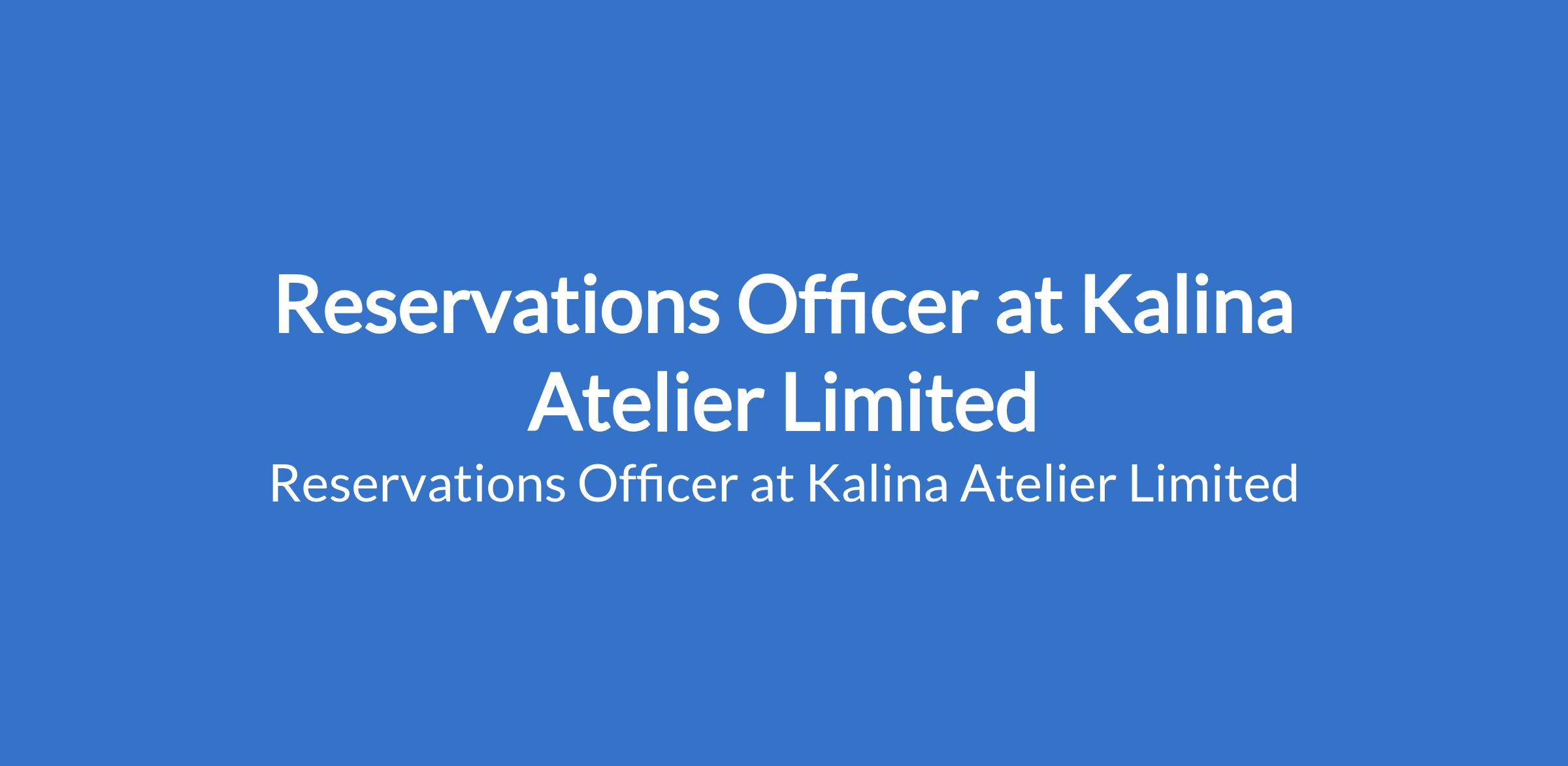 Kalina Atelier Limited is recruiting to fill the position of: Reservations Officer. The position is located in Abuja (FCT). Salary: N70,000 - N150,000 per month. Interested candidates should possess relevant qualification with experience in reservations, reception, customer service, or hospitality administration.
