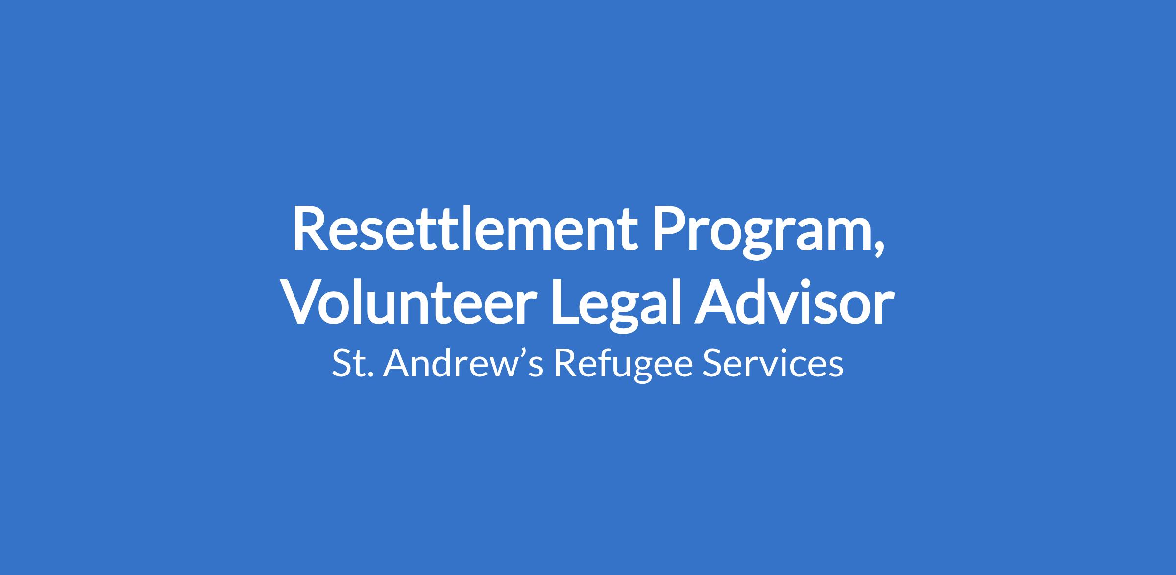 Call for Applications: Resettlement Program, Volunteer Legal Advisor
