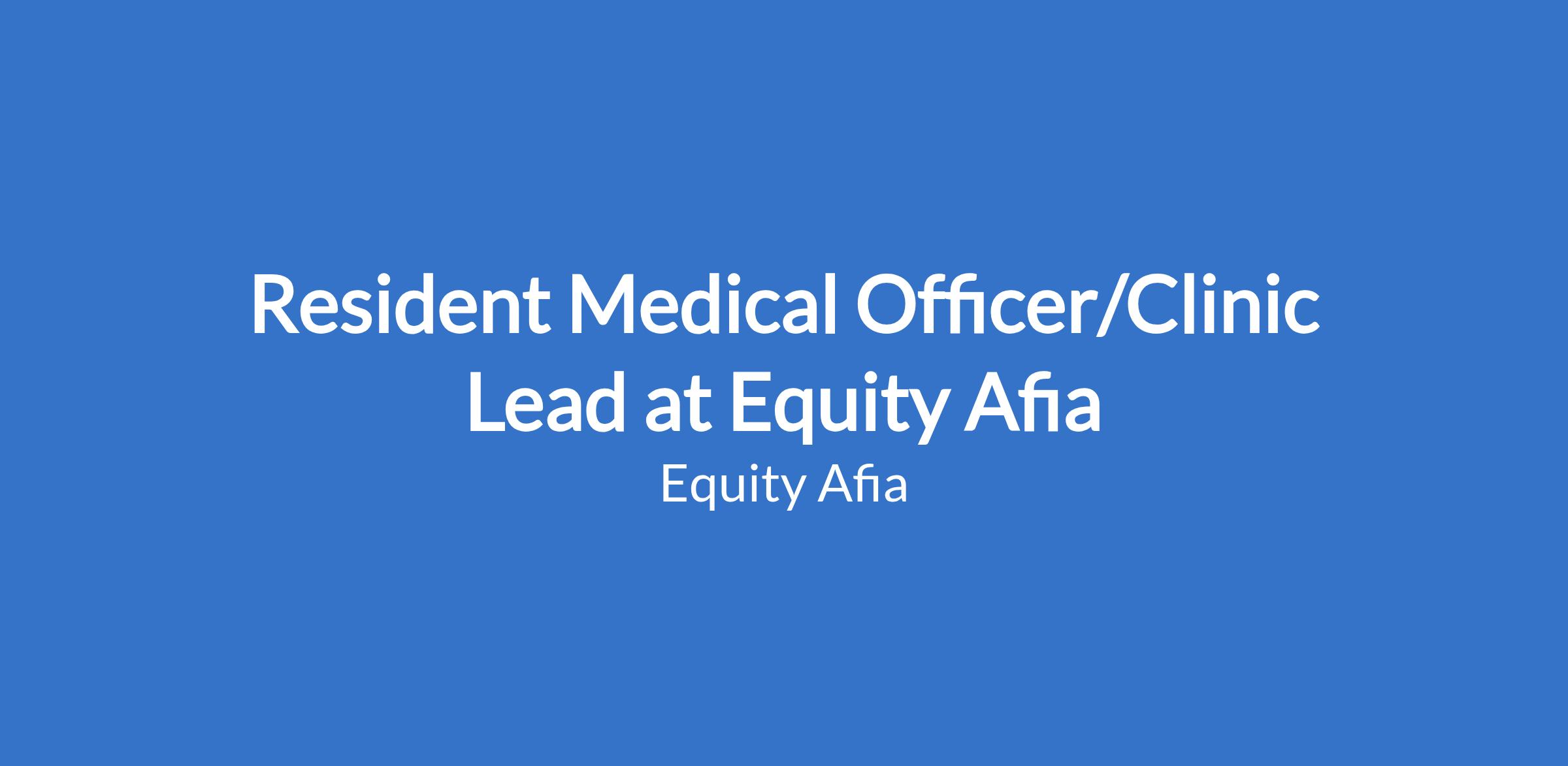 Resident Medical Officer/Clinic Lead at Equity Afia