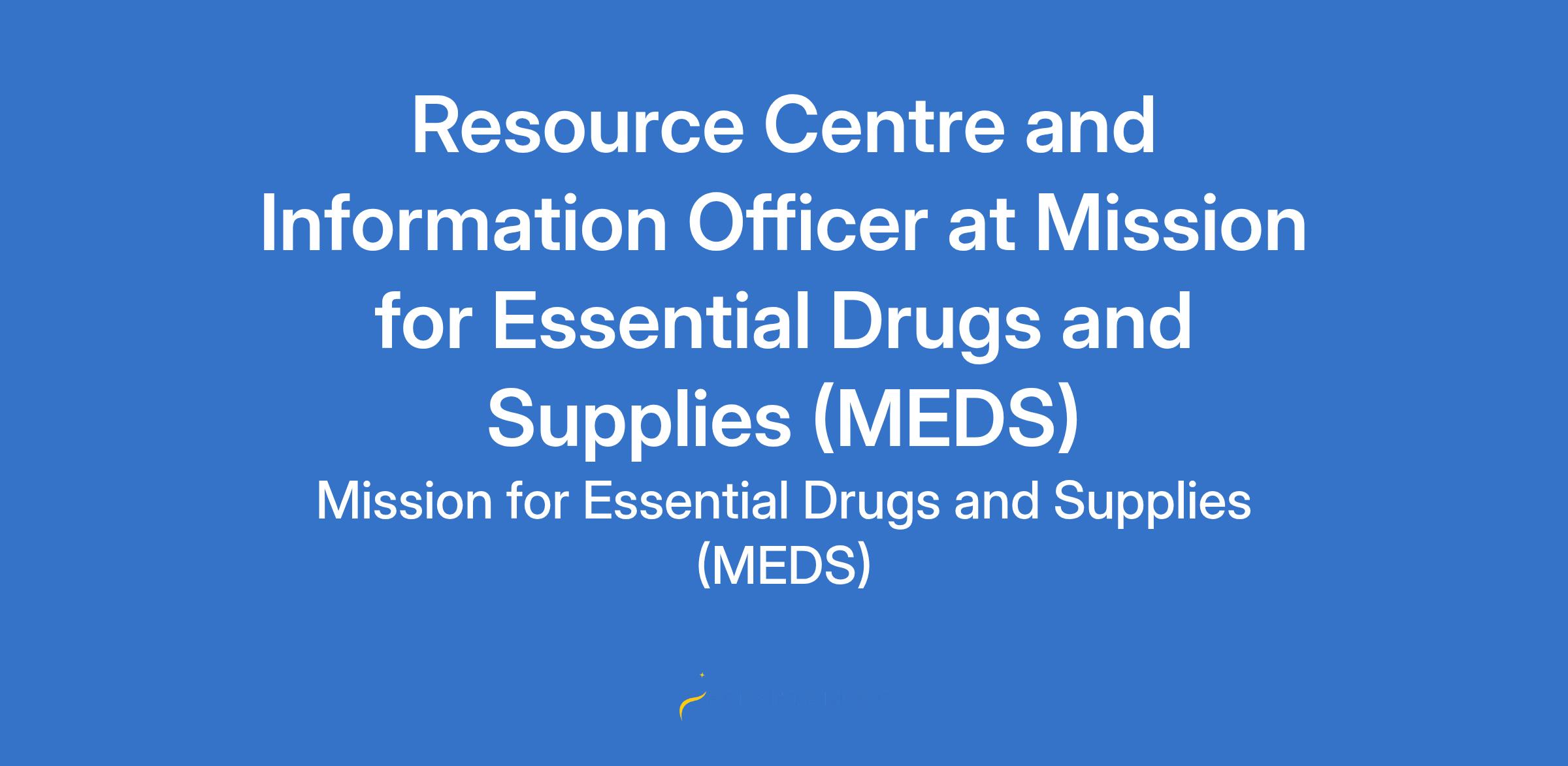 Resource Centre and Information Officer at Mission for Essential Drugs and Supplies (MEDS)