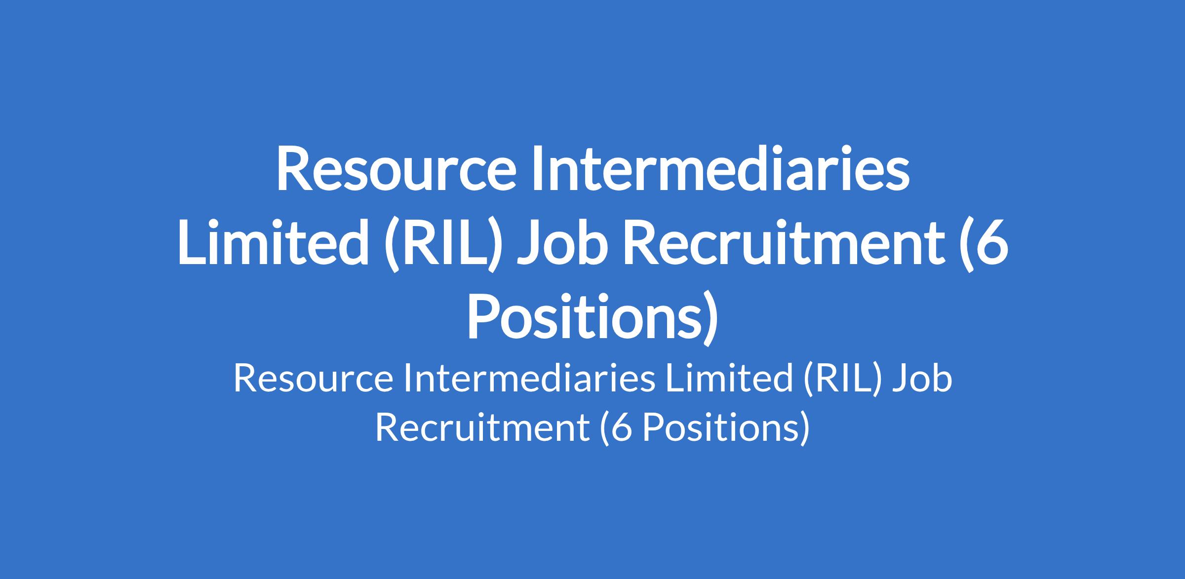 Resource Intermediaries Limited (RIL) is recruiting suitably qualified candidates to fill the following positions in Abia, Anambra, Edo, Ogun, Ebonyi, Imo, Akwa Ibom, Lagos, & Oyo States: Teller, HR Business Partner (HRBP), Driver, Business Development Officer, 7 Direct Sales Agent.