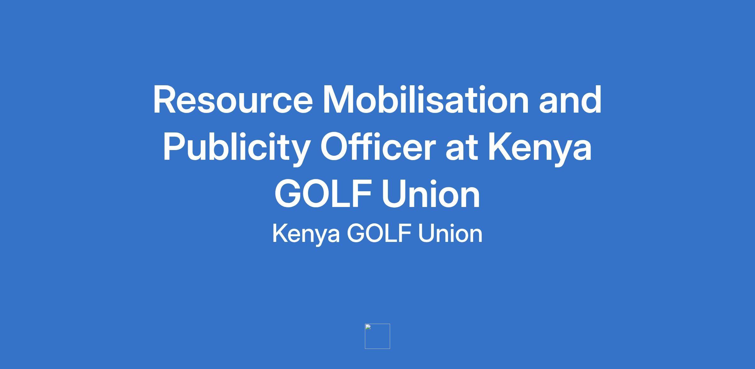The Kenya Golf Union is seeking a dynamic and results-oriented Resource Mobilisation and Publicity Officer to join its team. The successful candidate will be responsible for mobilizing funds, strengthening the Union's visibility, and managing communication and publicity activities.