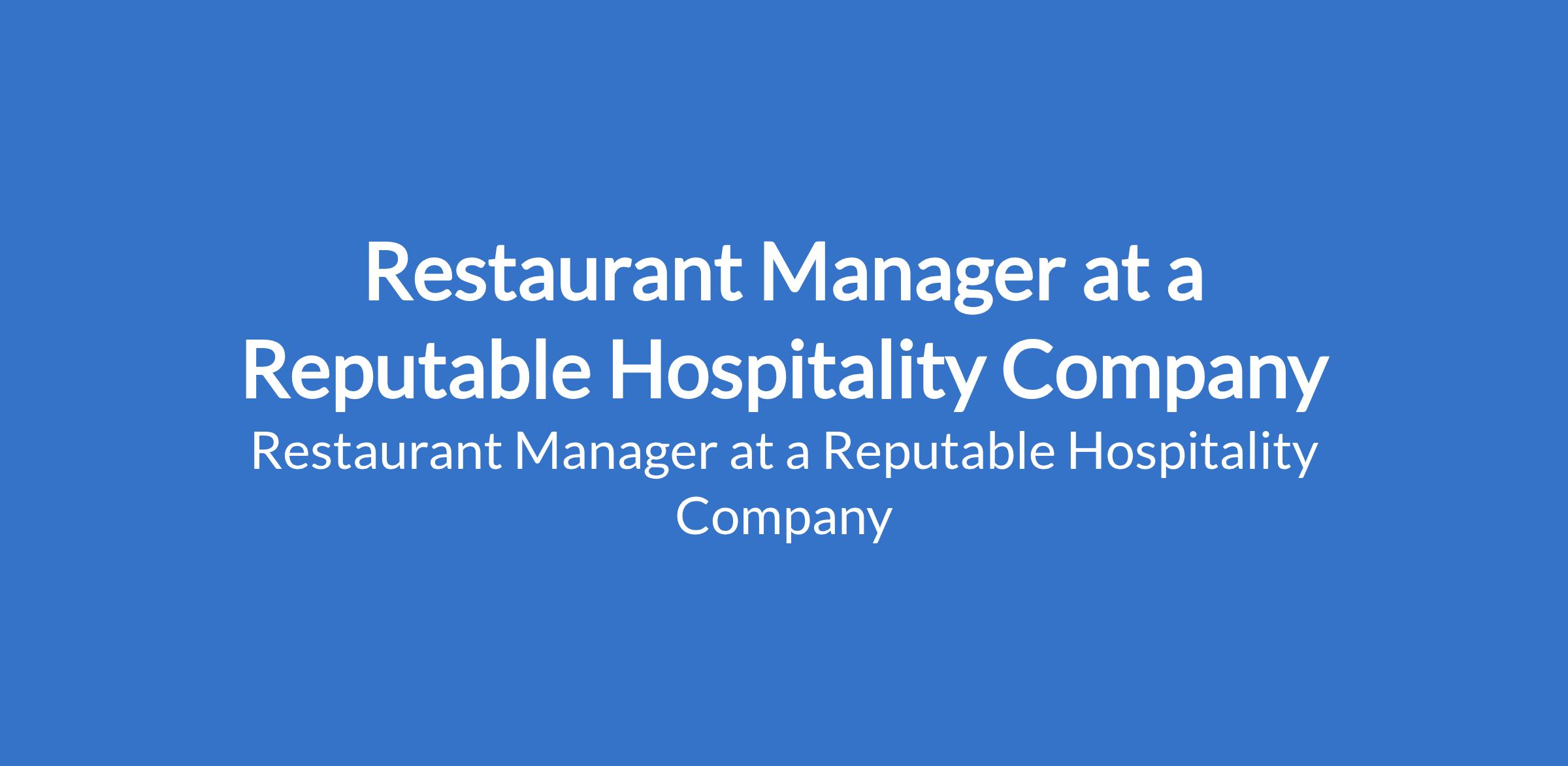 A reputable Hospitality company is recruiting to fill the position of: Restaurant Manager. The position is located in Lekki, Lagos State. Interested candidates should possess relevant qualifications with a minimum of 4 years experience as a Restaurant Manager or in a similar role