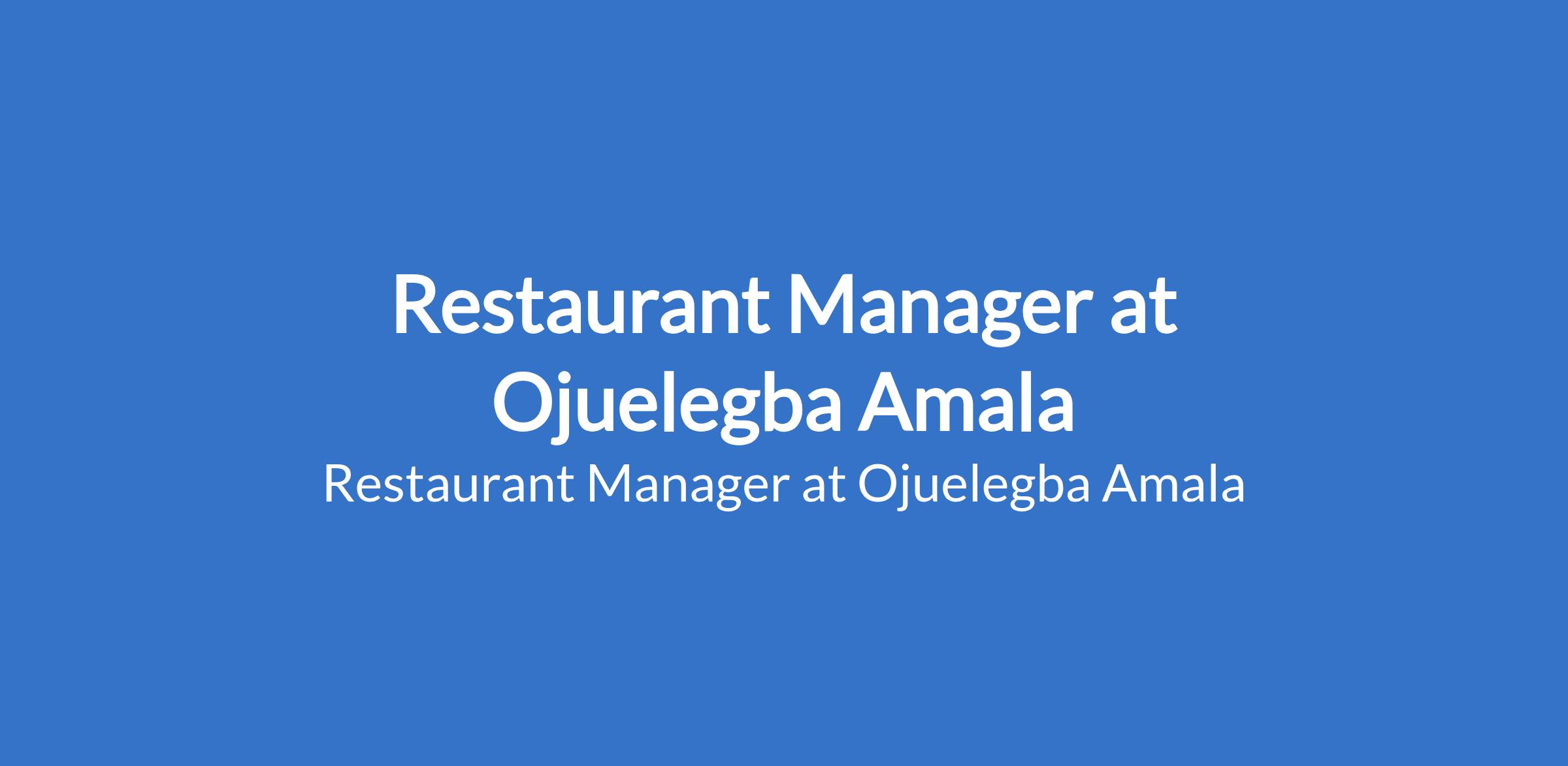 Ojuelegba Amala is recruiting to fill the position of: Restaurant Manager. The position is located in Abuja (FCT) State. Salary: N150,000 - N200,000 monthly. The ideal candidate must be hands-on, disciplined, and capable of maintaining high service standards while managing both staff and customers efficiently. Interested candidates should possess relevant qualifications with proven experience as a Restaurant Manager, preferably in a quick service setting; male candidates are preferred for this role.
