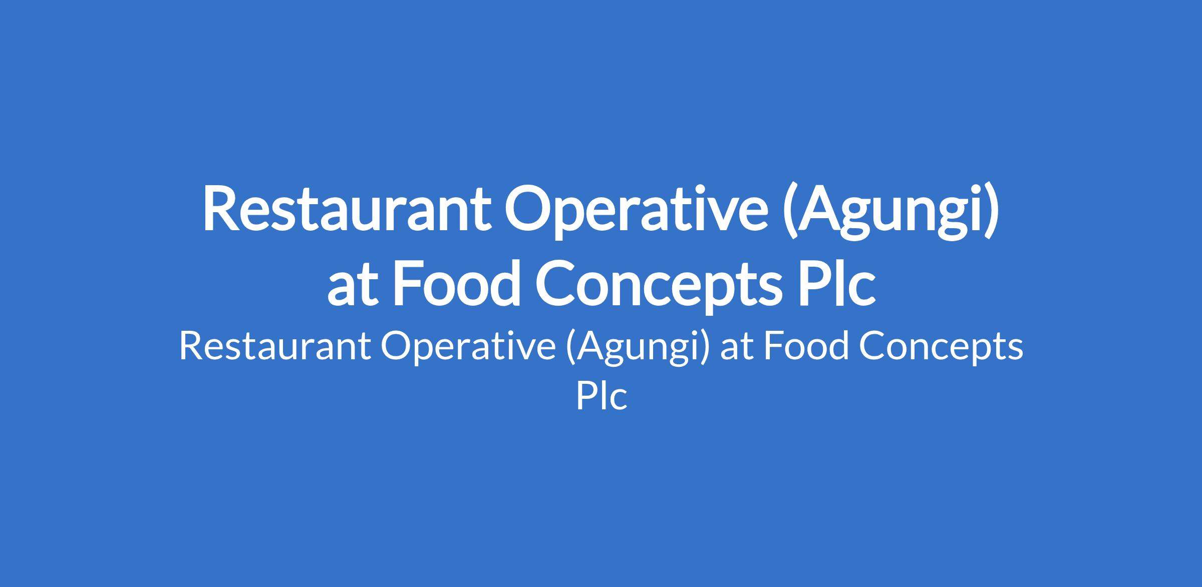 Food Concepts Plc is recruiting to fill the position of: Restaurant Operative . The position is located in Agungi, Lagos State. Interested candidates should possess an SSCE / NABTEB / NCE / OND qualification with 01 year experience in the QSR industry.
