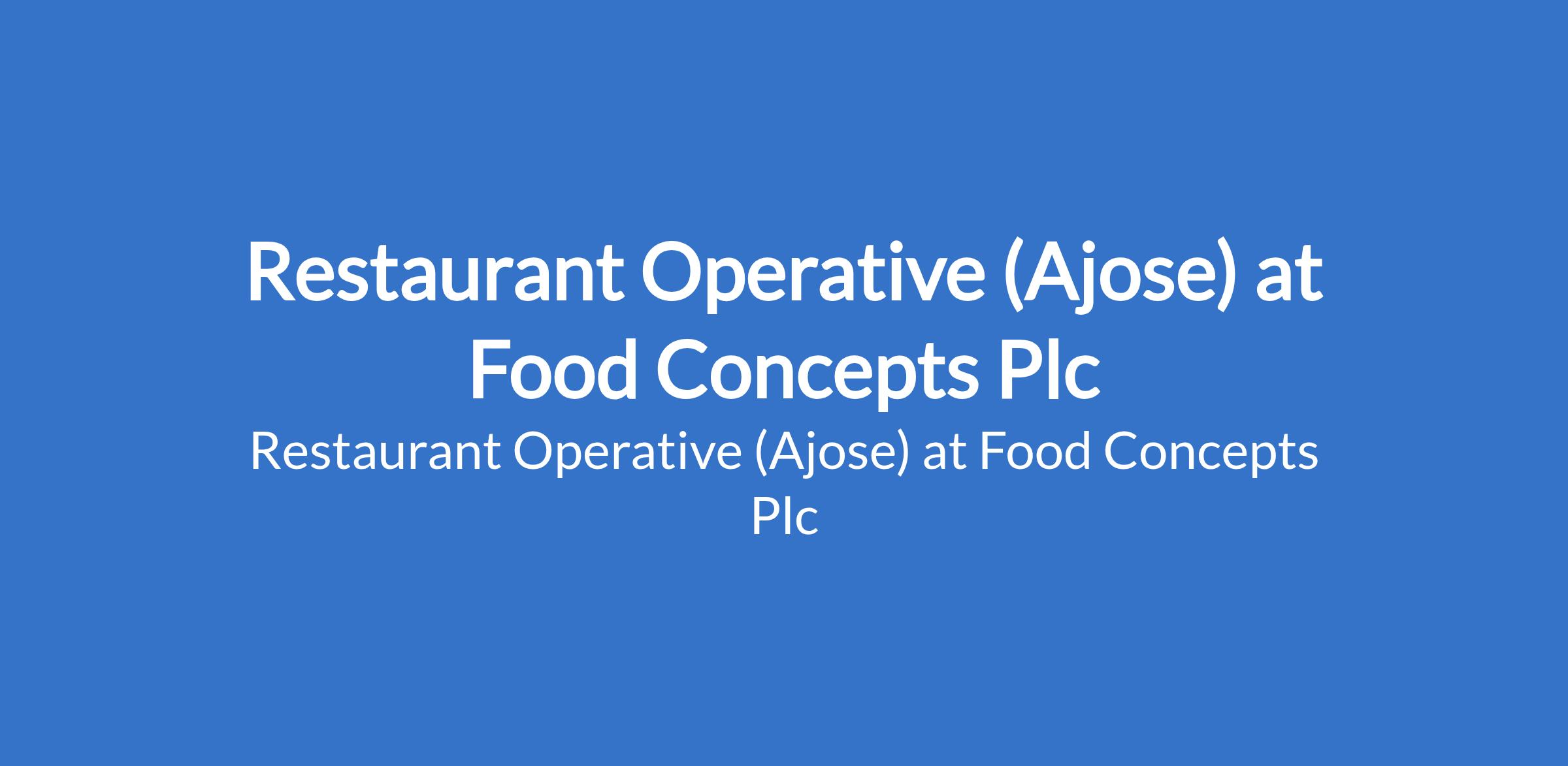 Food Concepts Plc is recruiting to fill the position of: Restaurant Operative. The position is located in Ajose, Lagos State. Interested candidates should possess an SSCE / NABTEB / NCE / OND qualification with 01 year experience in the QSR industry, and must reside on the Island or nearby.