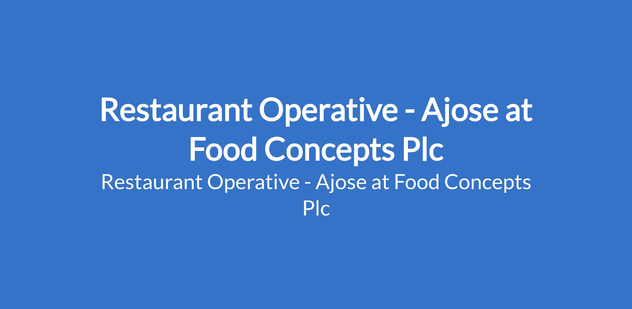 Food Concepts Plc is recruiting to fill the position of: Restaurant Operative. The position is located in Ajose, Lagos State. Interested candidates should possess an SSCE / NABTEB / NCE / OND with 01 year experience in the QSR industry and must reside on the island or nearby.