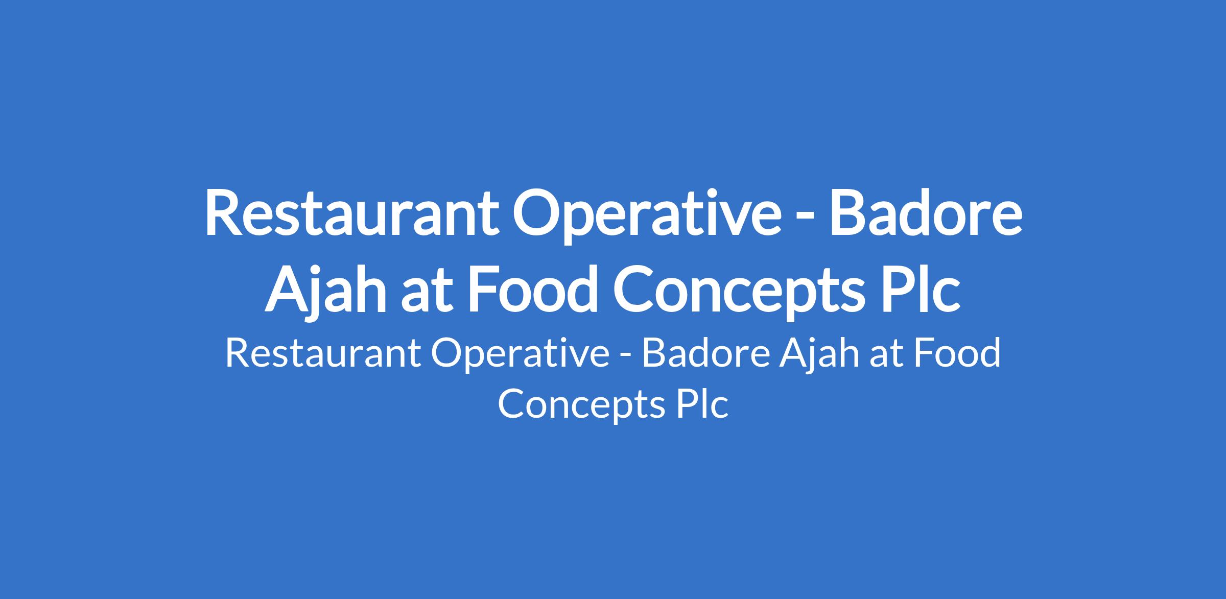 Food Concepts Plc is recruiting to fill the position of: Restaurant Operative. The position is located in Badore Ajah, Lagos State. Interested candidates should possess an SSCE / NABTEB / NCE / OND with 01 year experience in the QSR industry and must reside on the island or nearby.