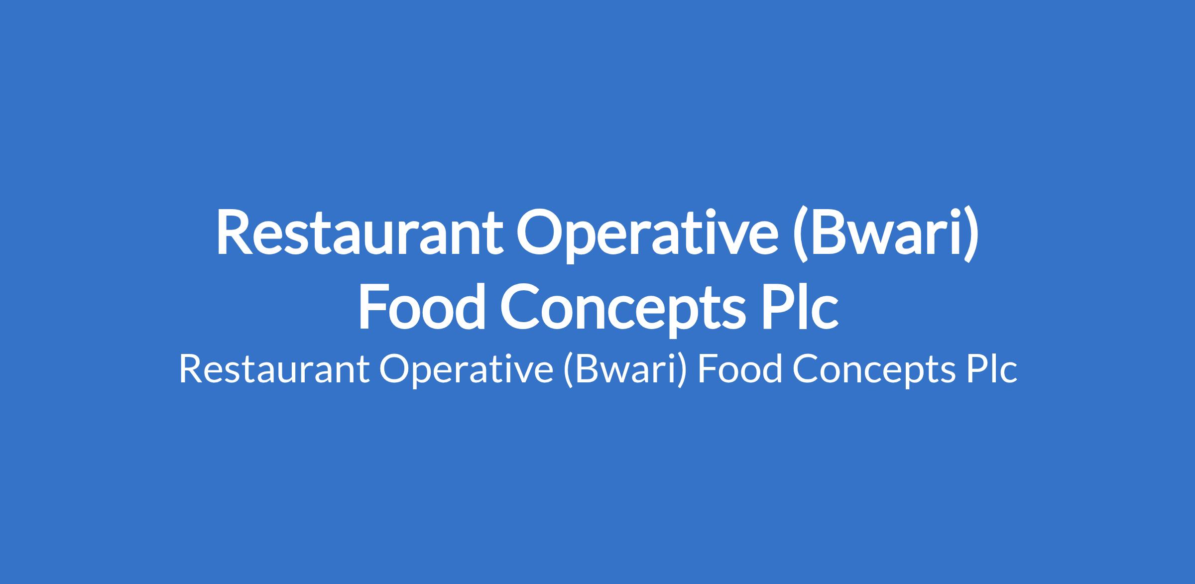 Food Concepts Plc is recruiting to fill the position of: Restaurant Operative. The position is located in Zango, Bwari - Abuja (FCT). Interested candidates should possess an SSCE / OND / NCE qualification.