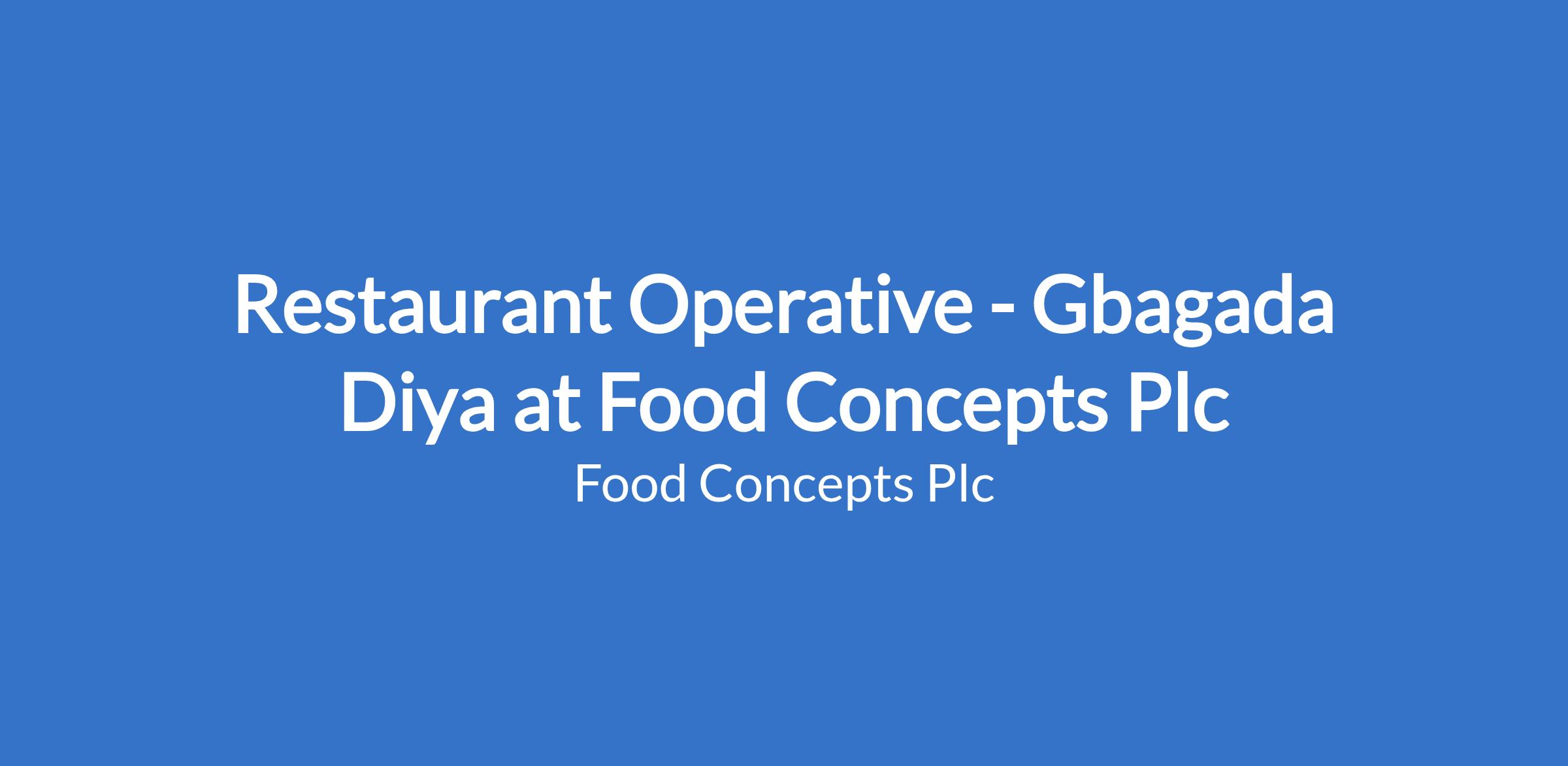 Restaurant Operative - Gbagada Diya at Food Concepts Plc