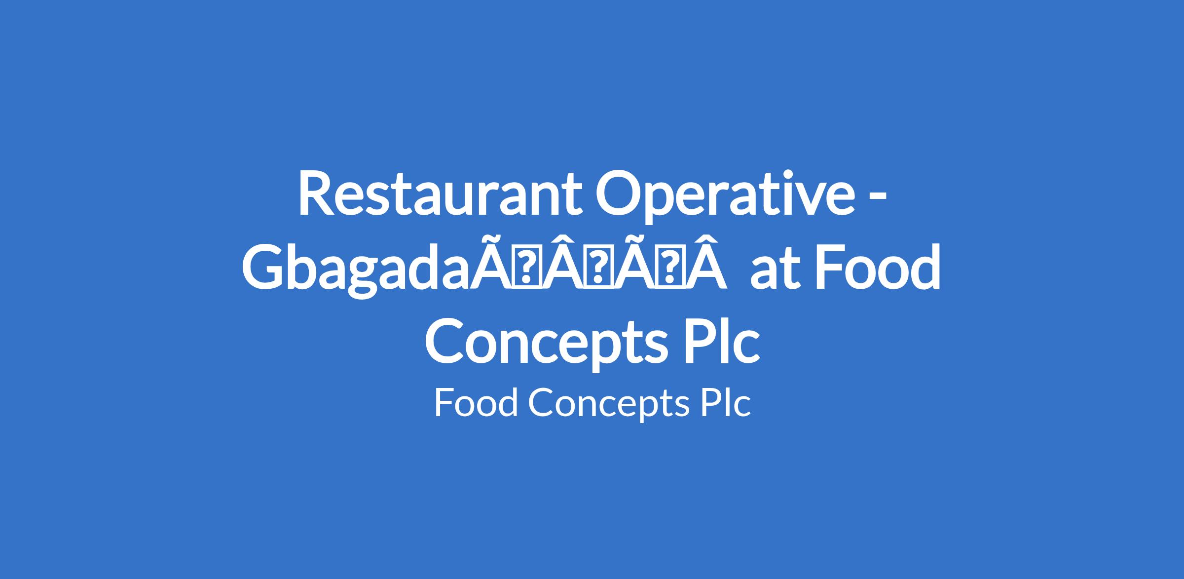 Restaurant Operative - Gbagada  at Food Concepts Plc