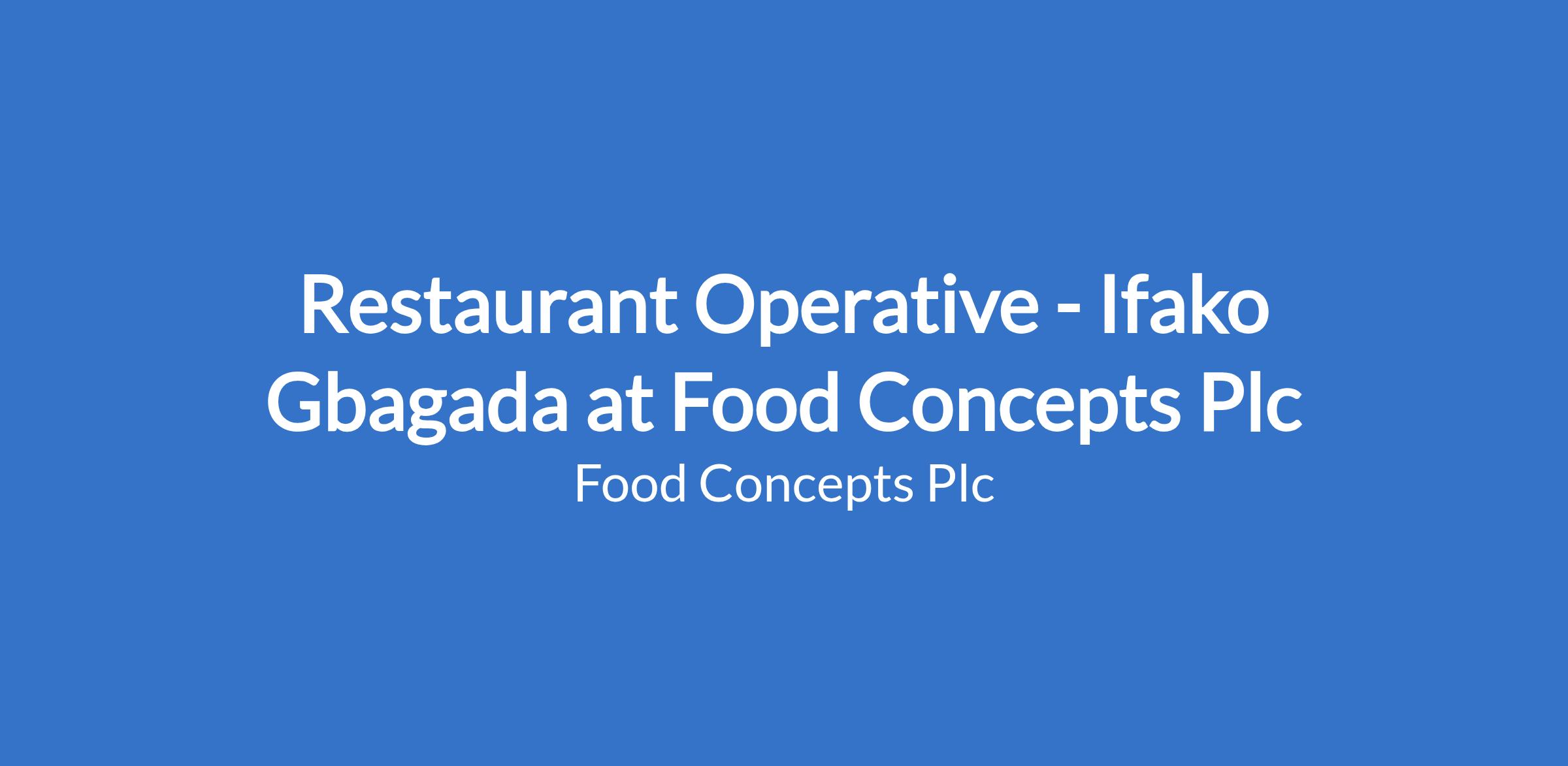 Restaurant Operative - Ifako Gbagada at Food Concepts Plc