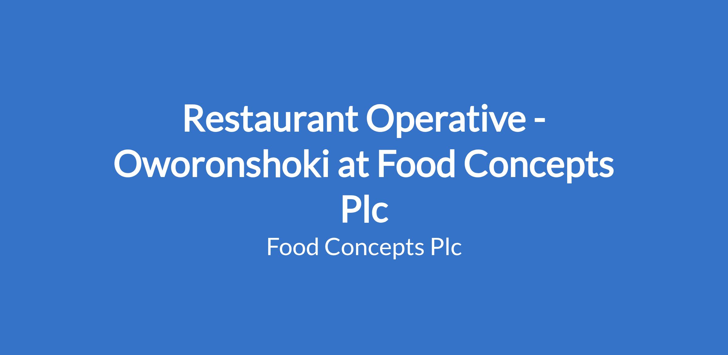 Restaurant Operative - Oworonshoki at Food Concepts Plc