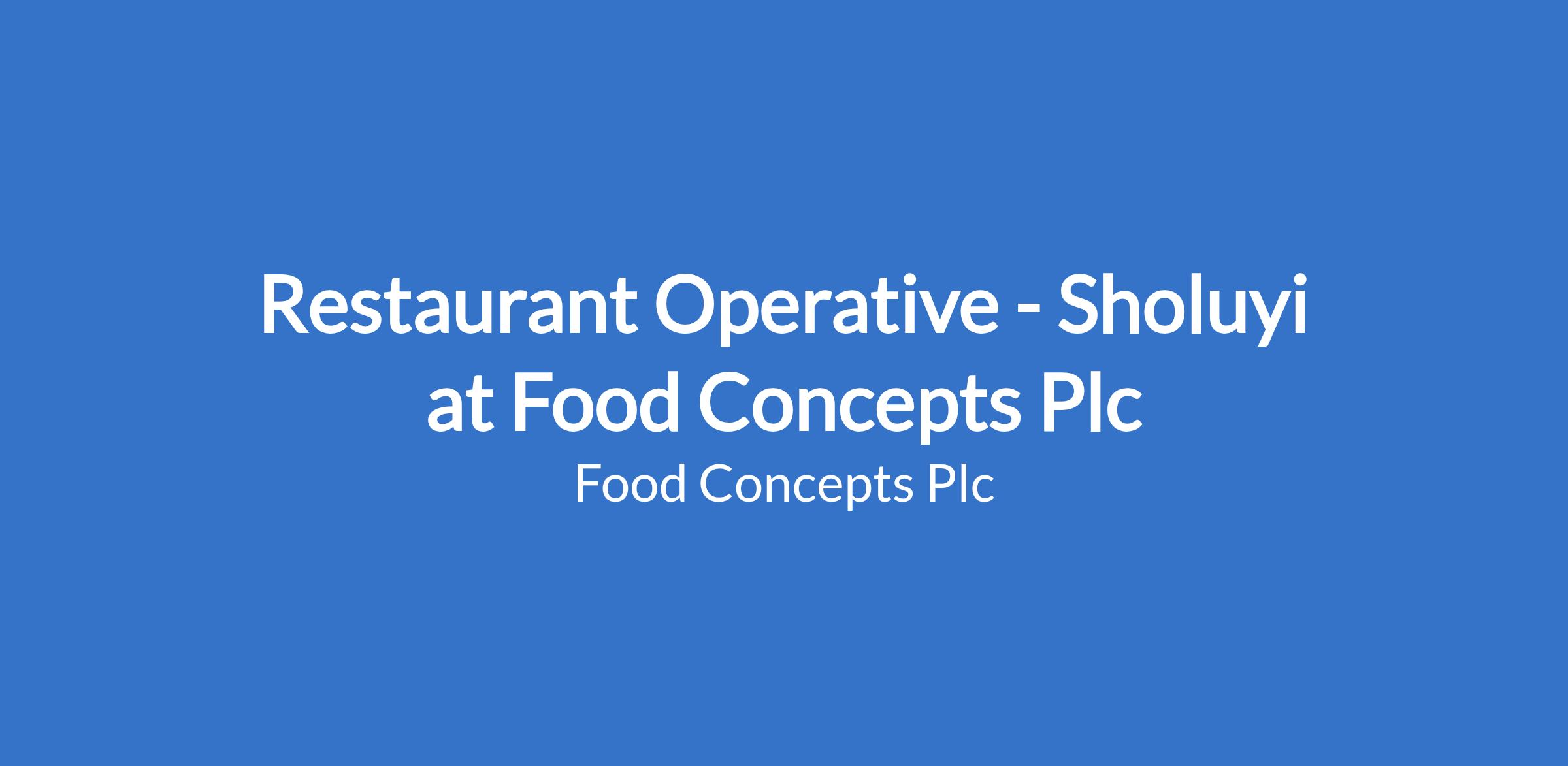 Restaurant Operative - Sholuyi at Food Concepts Plc
