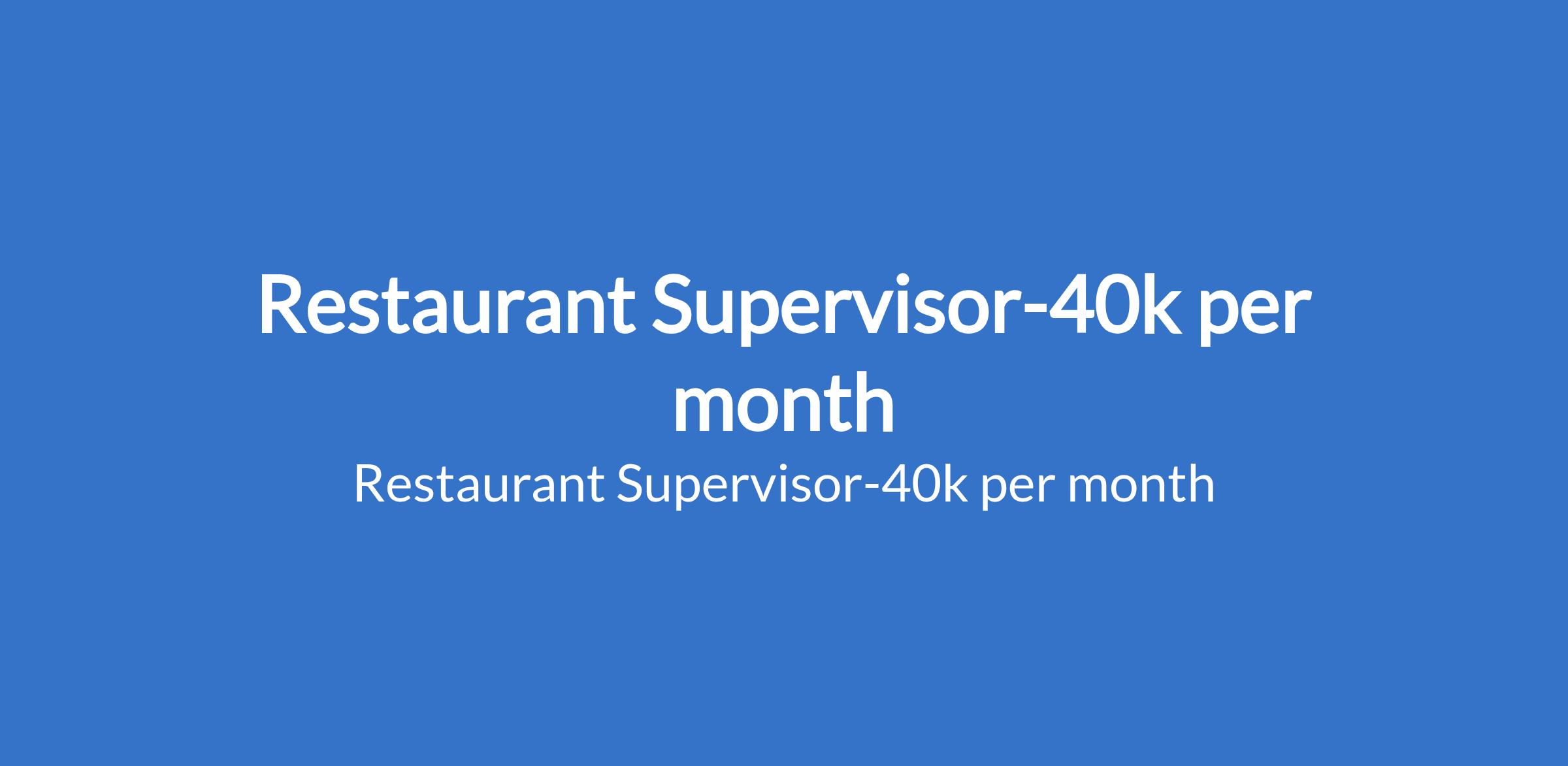 Restaurant Supervisor-40k per month