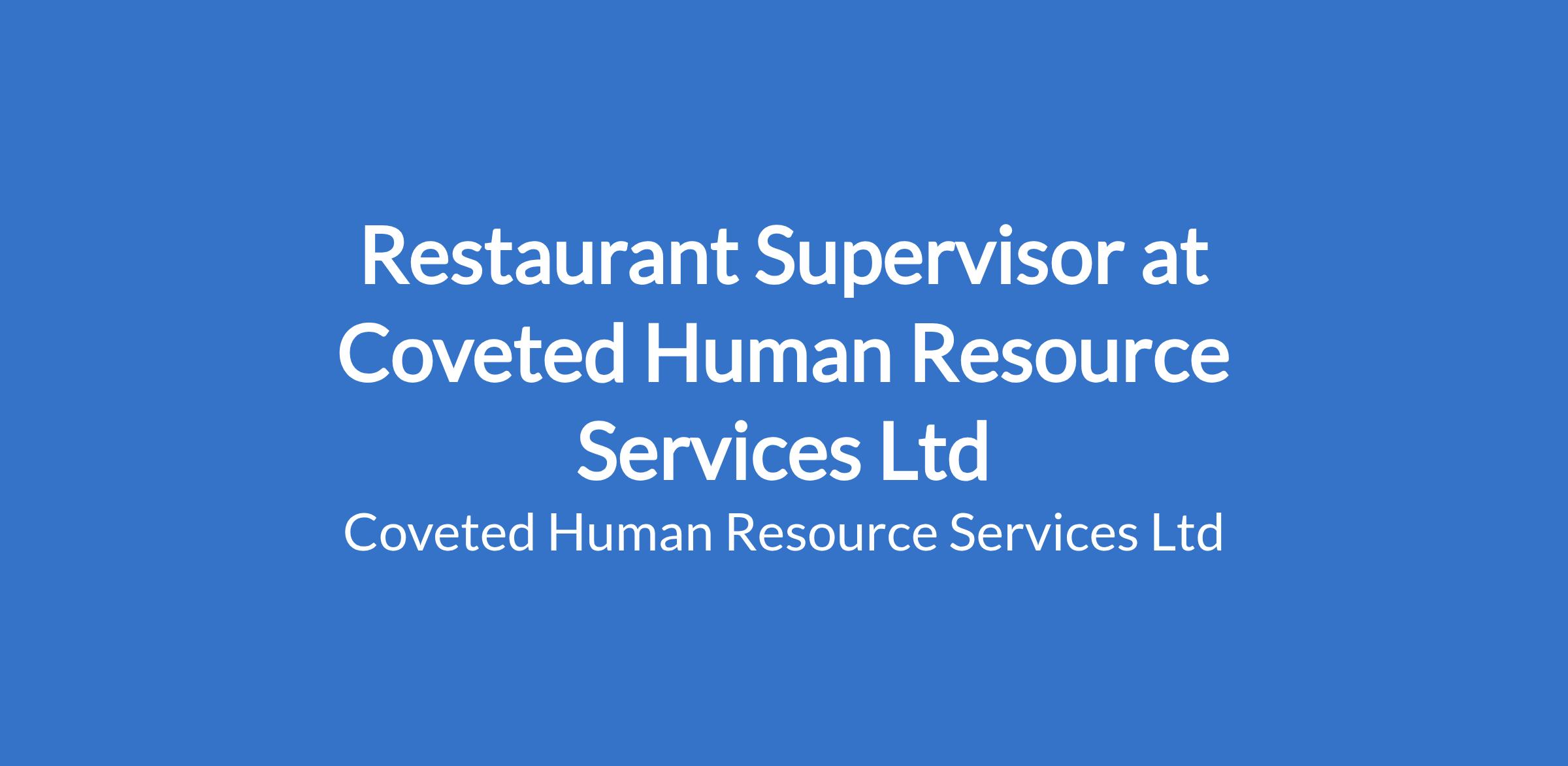 2 - 3 years' experience in restaurant or hospitality supervision.
