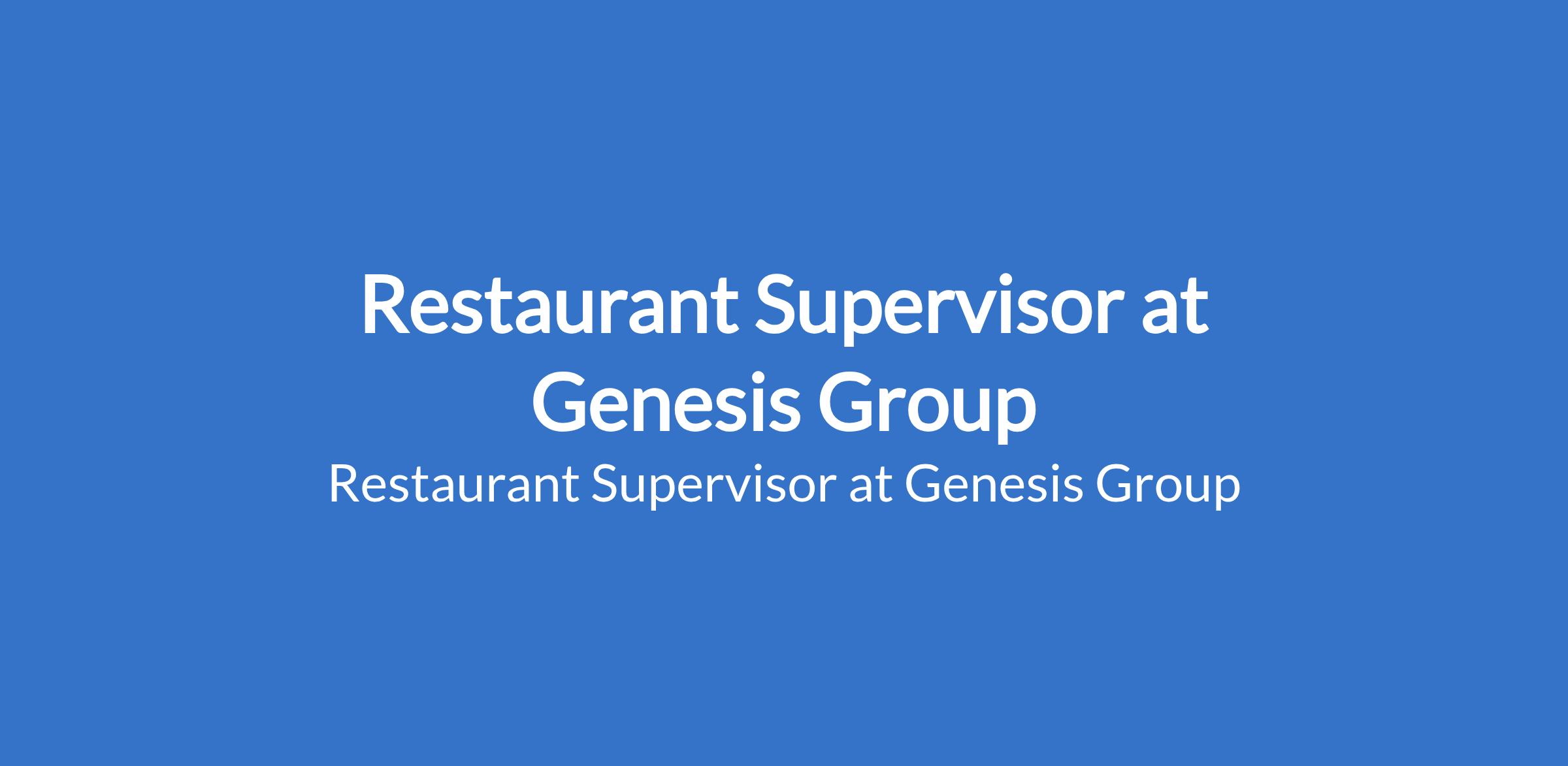 Genesis Group is recruiting to fill the position of: Restaurant Supervisor. Interested candidates should possess relevant qualifications.