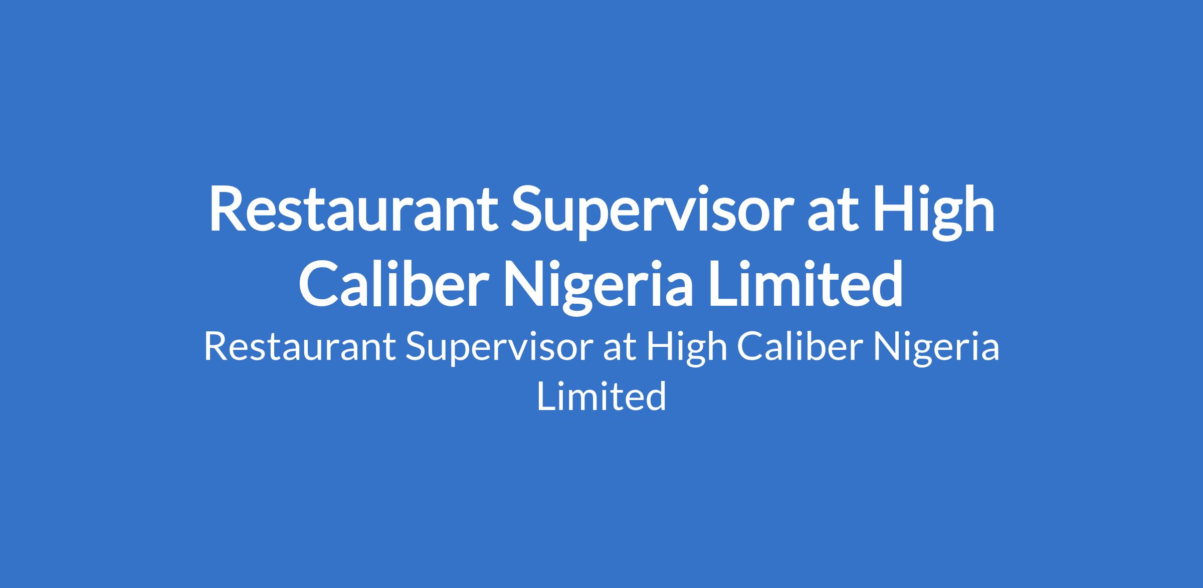High Caliber Nigeria Limited is recruiting to fill the position of: Restaurant Supervisor. The position is located in Ikeja (GRA), Lagos State. Salary: N120,000 - N150,000 / Month. In this role, you will be responsible for overseeing daily operations on the restaurant floor, ensuring excellent customer service, smooth coordination between staff, and adherence to company standards. Interested candidates should possess minimum of an OND / HND or equivalent qualification with 24 years experience in a restaurant or hospitality environment.