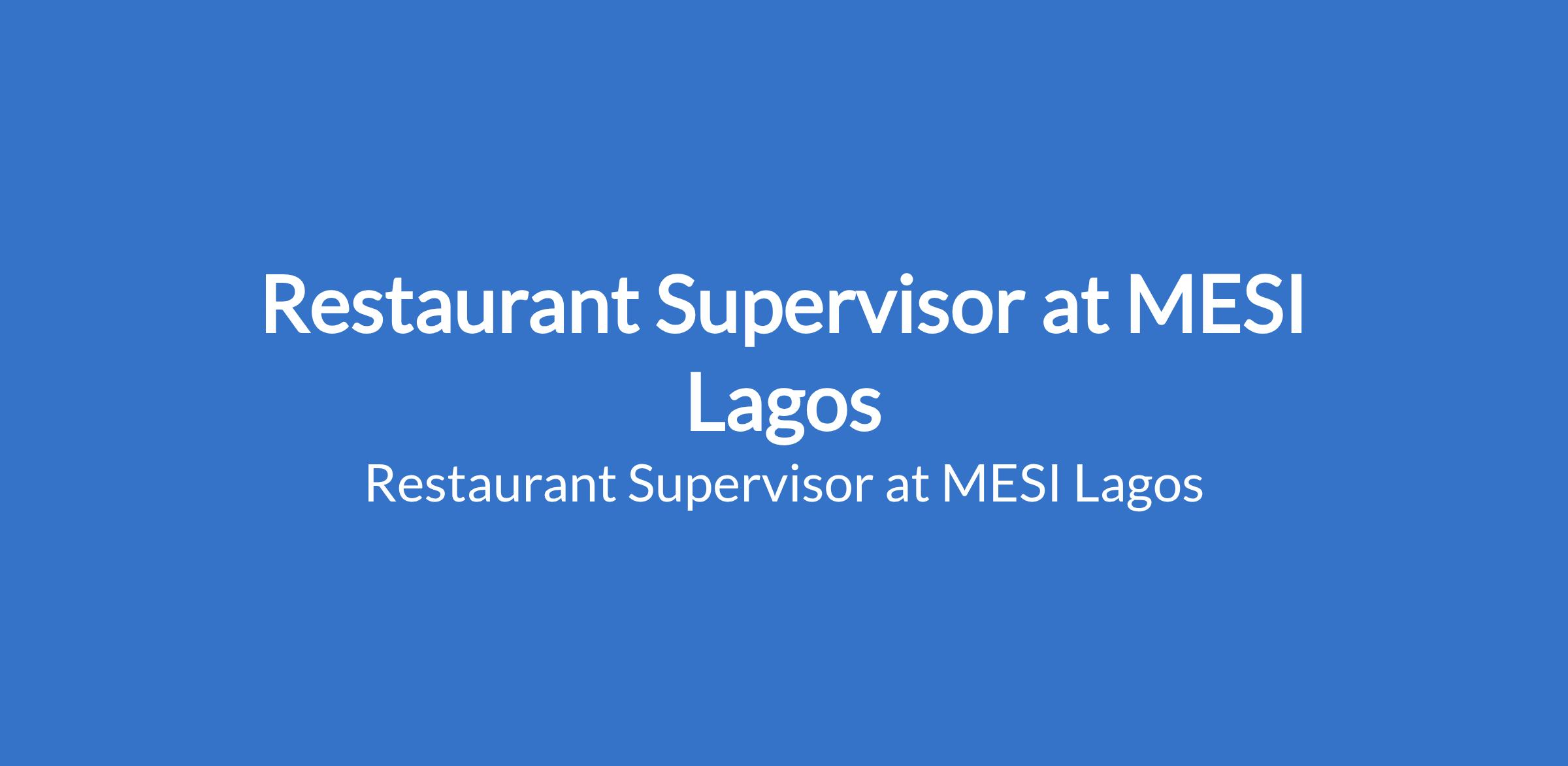 MESI Lagos is recruiting to fill the position of: Restaurant Supervisor. The position is located in Lagos State. Interested candidates should preferably possess an OND / HND / B.Sc in Hospitality or related field preferred with 2 3 years supervisory experience in hospitality.