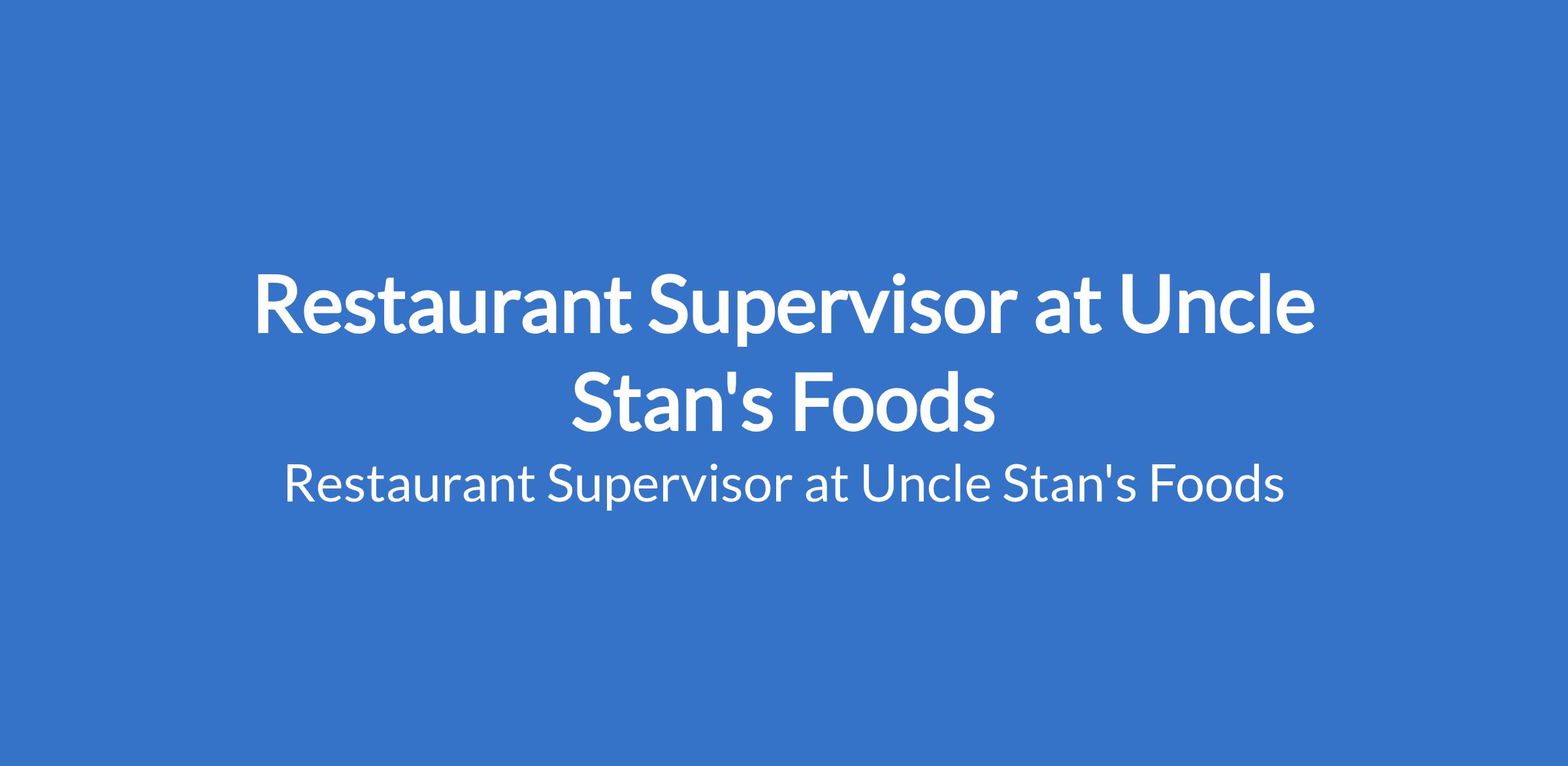 Restaurant Supervisor at Uncle Stan's Foods