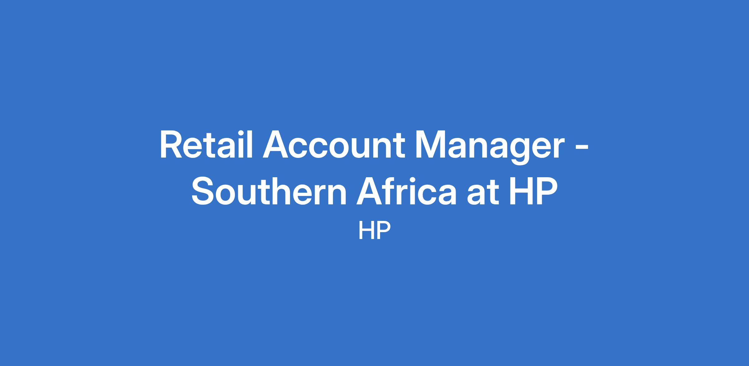 HP South Africa is looking for an energetic and ambitious experienced Retail Account Manager to support and manage our existing vendor base in Southern Africa region.