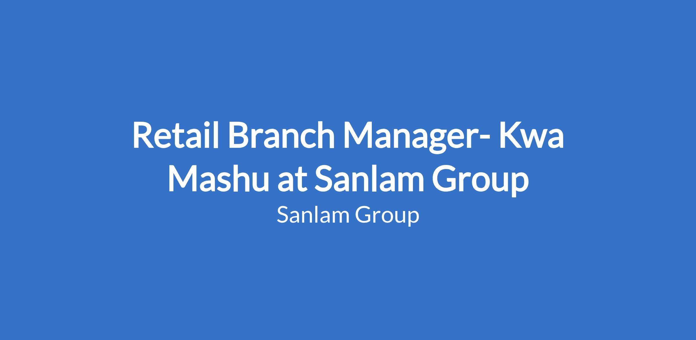 Retail Branch Manager- Kwa Mashu at Sanlam Group