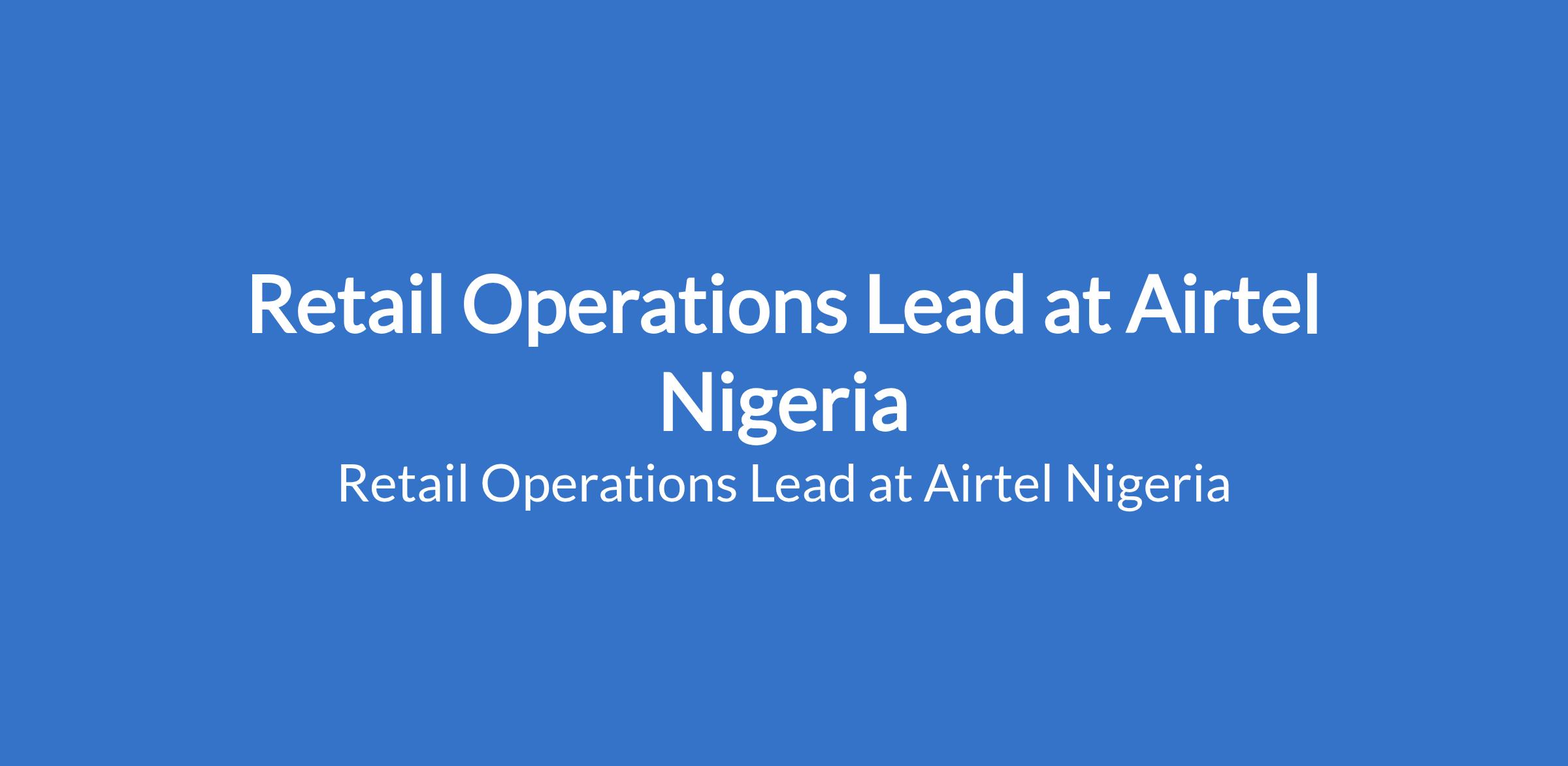 Airtel Nigeria is recruiting to fill the position of: Retail Operations Lead. The position is located in Lagos State. Interested candidates should possess a Bachelors Degree in Business Administration, Marketing, or related fields; (MBA is an advantage) with a minimum of 10 years of experience in retail operations, preferably within telecom or FMCG sectors.