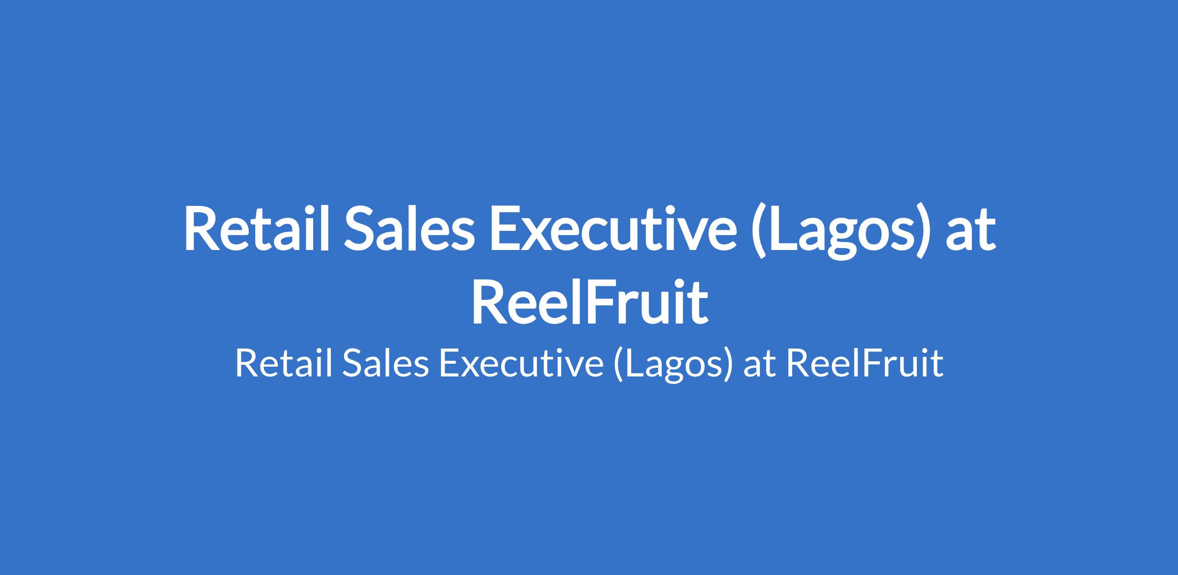 ReelFruit is recruiting to fill the position of: Retail Sales Executive. The position is located in Island, Lagos State. Interested candidates should possess a minimum of an HND / B.Sc. / B.A. in Marketing, Business Administration, or relevant field with 13 years of retail or modern trade sales experience, preferably in FMCG.
