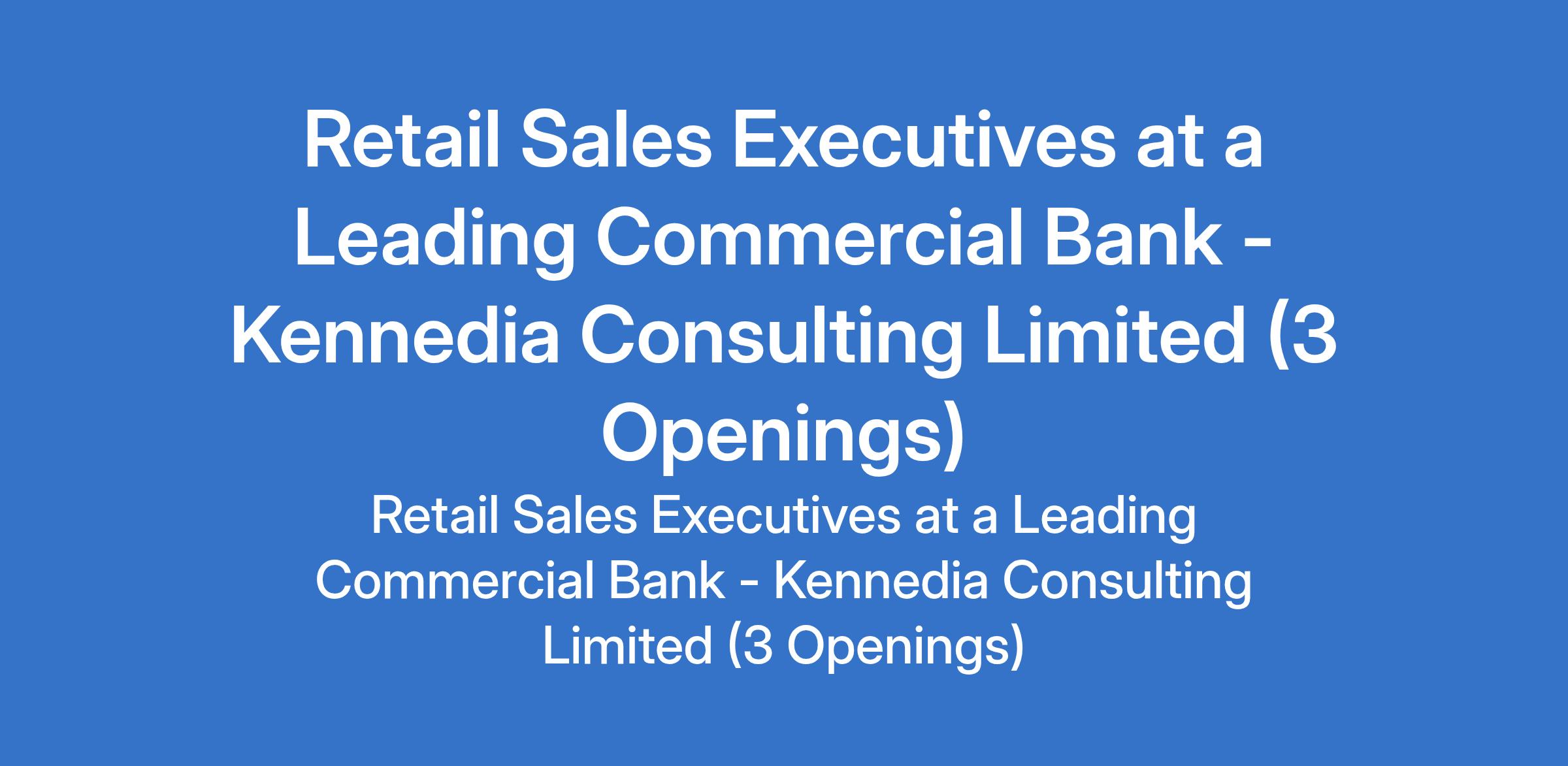 Kennedia Consulting Limited - Our client, a leading commercial bank is recruiting to fill the position of: Retail Sales Executive. The position is located in Victoria Island, Ikeja, Apapa - Lagos State. Salary: N150,000 monthly. Interested candidates should possess an HND (Upper/Lower Credit) or B.Sc (Minimum Second Class Lower).
