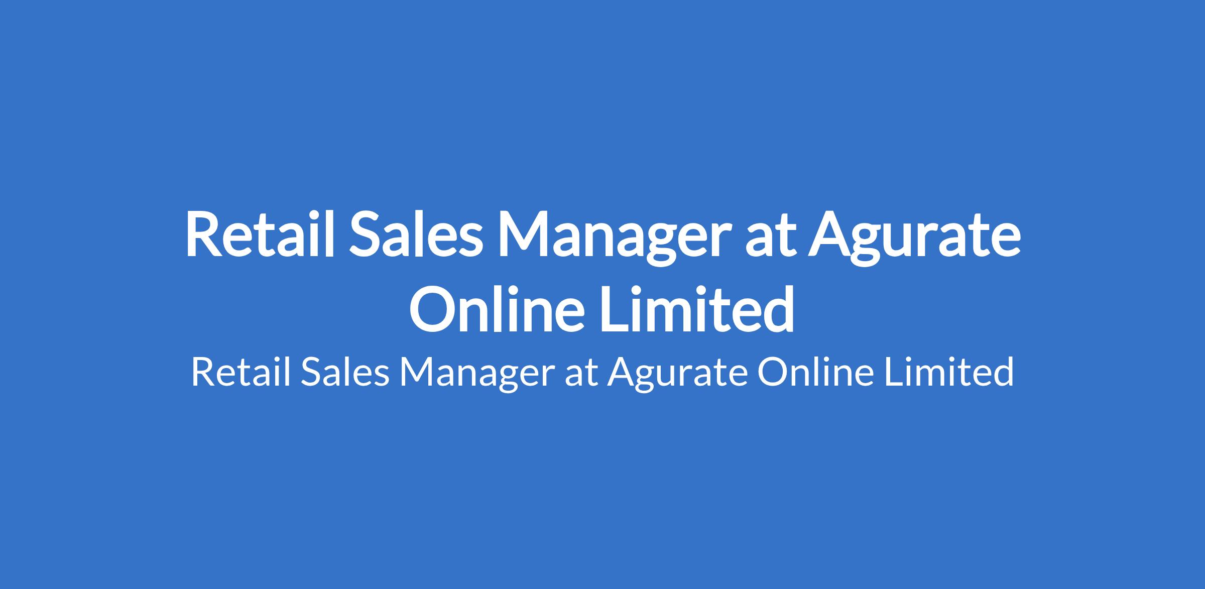 Agurate Online Limited is recruiting to fill the position of: Retail Sales Manager. The position is located in Awka, Anambra State. Interested candidates should possess relevant qualifications with at least 4 years of demonstrated expertise in either commercial banking, FMCG, Real Estate, retail sales (store operation) and other key sectors and must be readily available or around Awka, Anambra State. Females are preferred for gender balance.