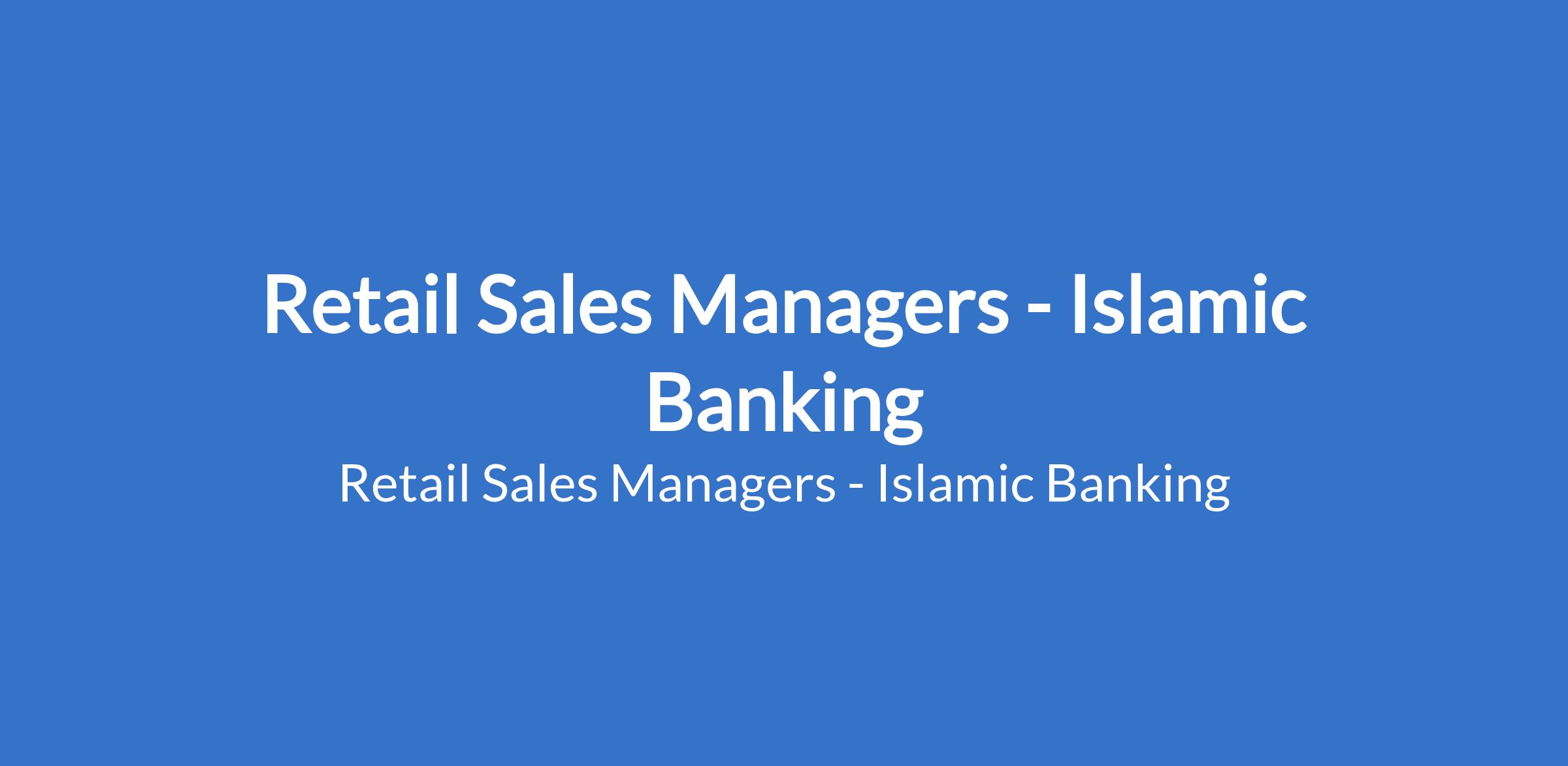 Retail Sales Managers - Islamic Banking