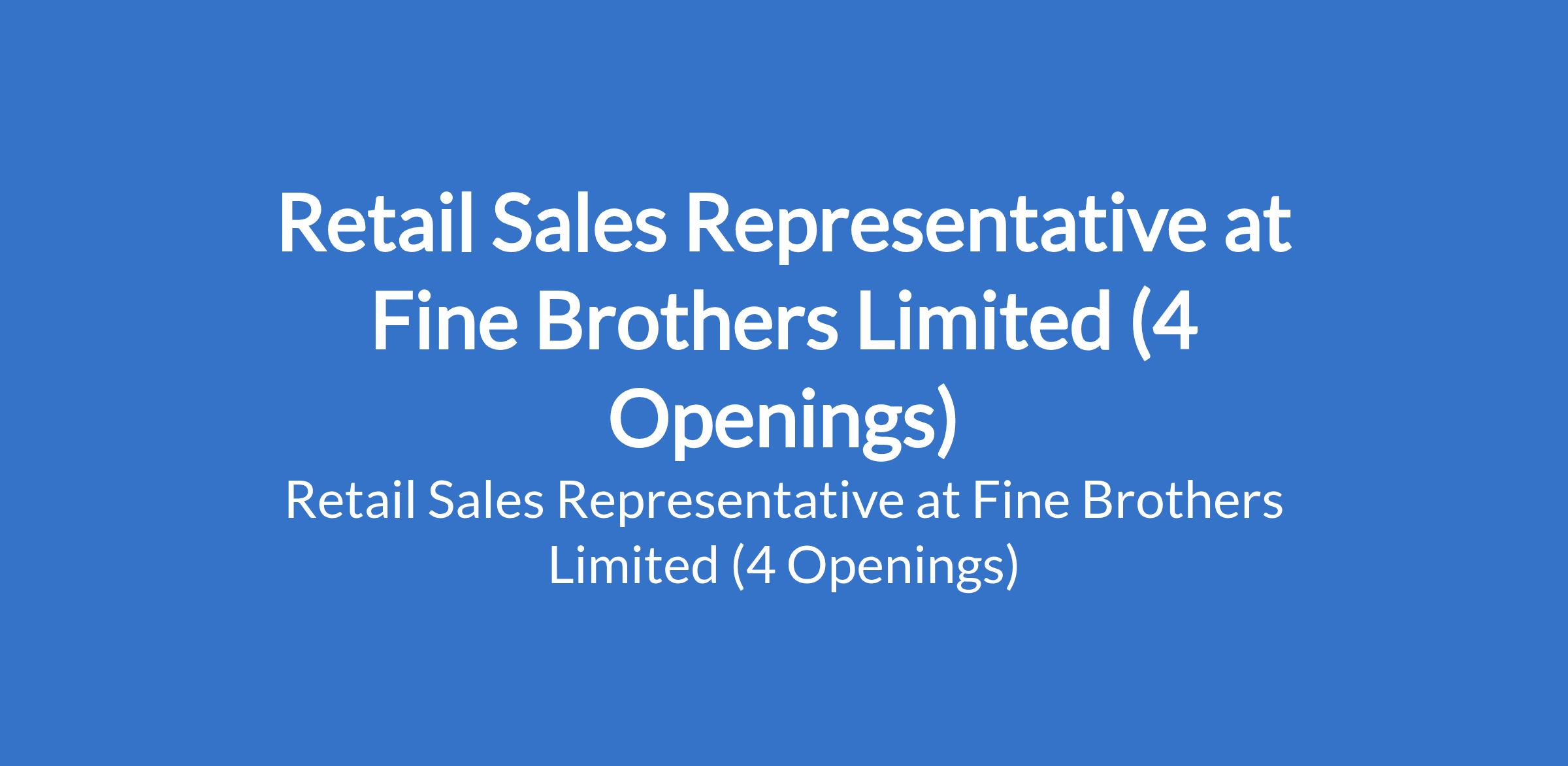 Fine Brothers Limited is recruiting to fill the position of: Retail Sales Representative. The position is located in Apo, Wuse - Abuja (FCT), Asaba - Delta, and Nsukka - Enugu States. Interested candidates should possess relevant qualifications and work experience.