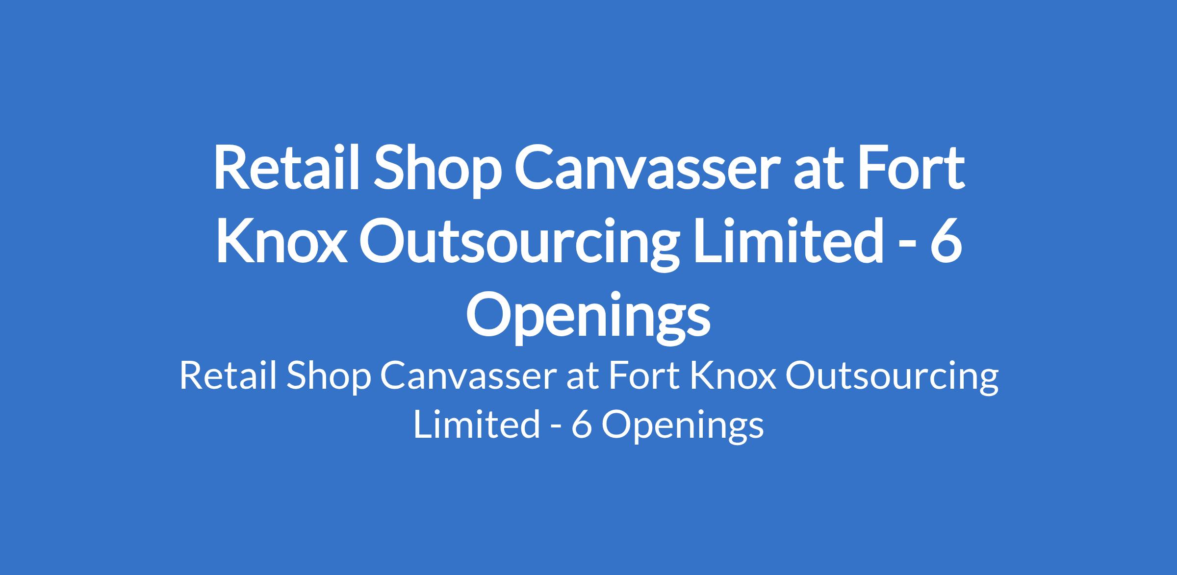 Fort Knox Outsourcing Limited is recruiting to fill the position of: Retail Shop Canvasser. The position is located in Abuja (FCT), Abia, Enugu, Imo, Katsina, & Nasarawa States. Salary: N70,000 / month. Interested candidates should possess an SSCE / OND with prior experience in sales or field marketing, which is an added advantage.