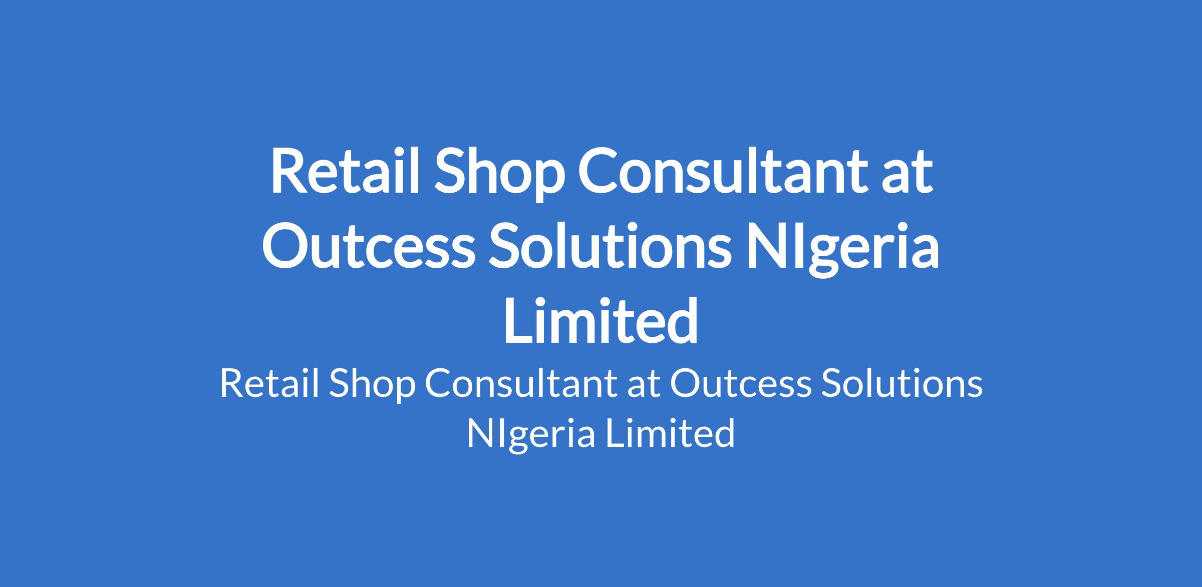 Outcess Solutions Nigeria Limited is recruiting to fill the position of: Retail Shop Consultant. The position is located in Ogoja, Cross Rivers State. Salary: N150,000 monthly. Interested candidates should possess an HND / Bachelor`s Degree with 1 - 3 years experience.