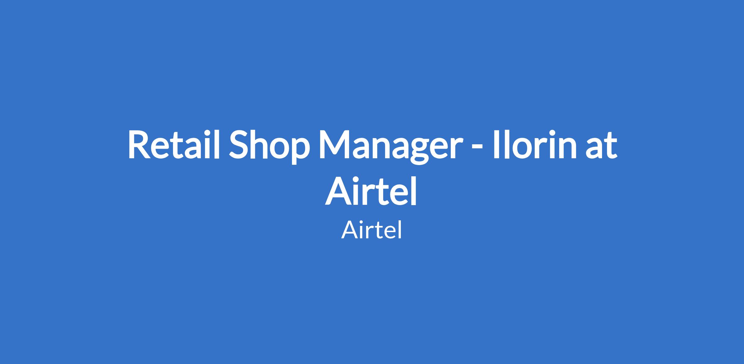 Retail Shop Manager - Ilorin at Airtel