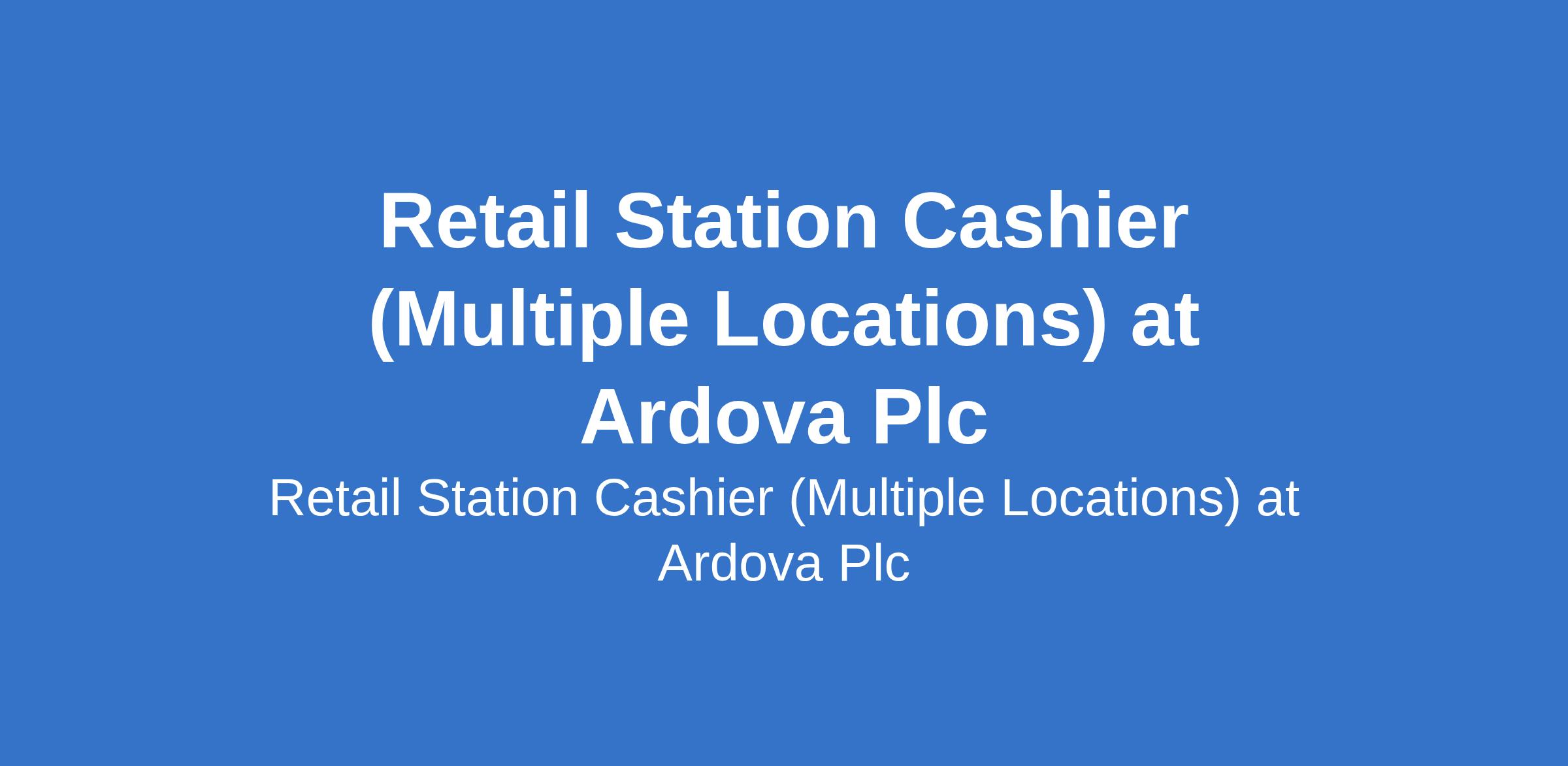 Retail Station Cashier (Multiple Locations) at Ardova Plc