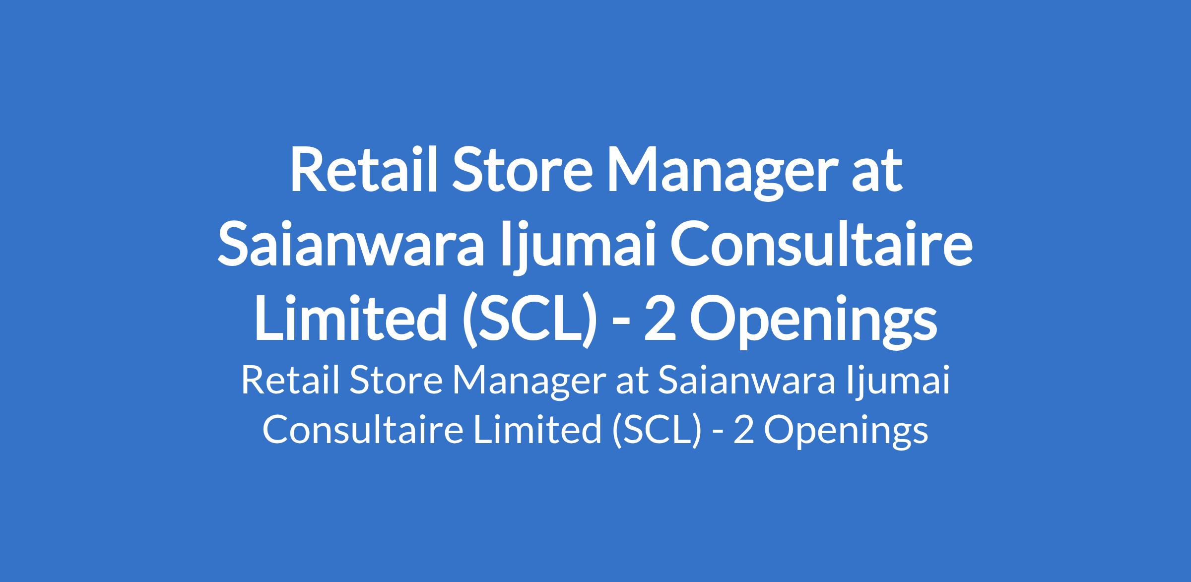 Saianwara Ijumai Consultaire Limited (SCL) is recruiting to fill the position of: Retail Store Manager. The position is located in Maitama and Kwali, Abuja (FCT). Interested candidates should possess a Bachelors Degree or HND qualification in Business Administration, Marketing, Agriculture, Supply Chain Management, or related fields with 3 - 5 years experience in retail store management (agro-related experience preferred).
