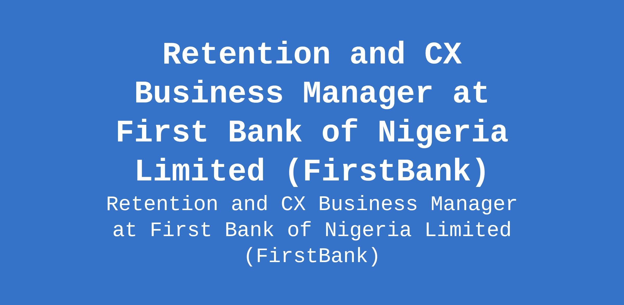 First Bank of Nigeria Limited (FirstBank) is recruiting to fill the position of: Retention and CX Business Manager. The position is located in Lagos State. Interested candidates should possess a First degree in related discipline with a minimum of 5 years relevant experience.