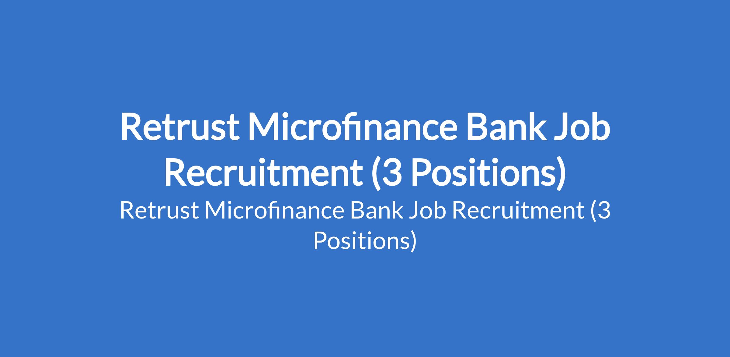 Retrust Microfinance Bank Job Recruitment (3 Positions)