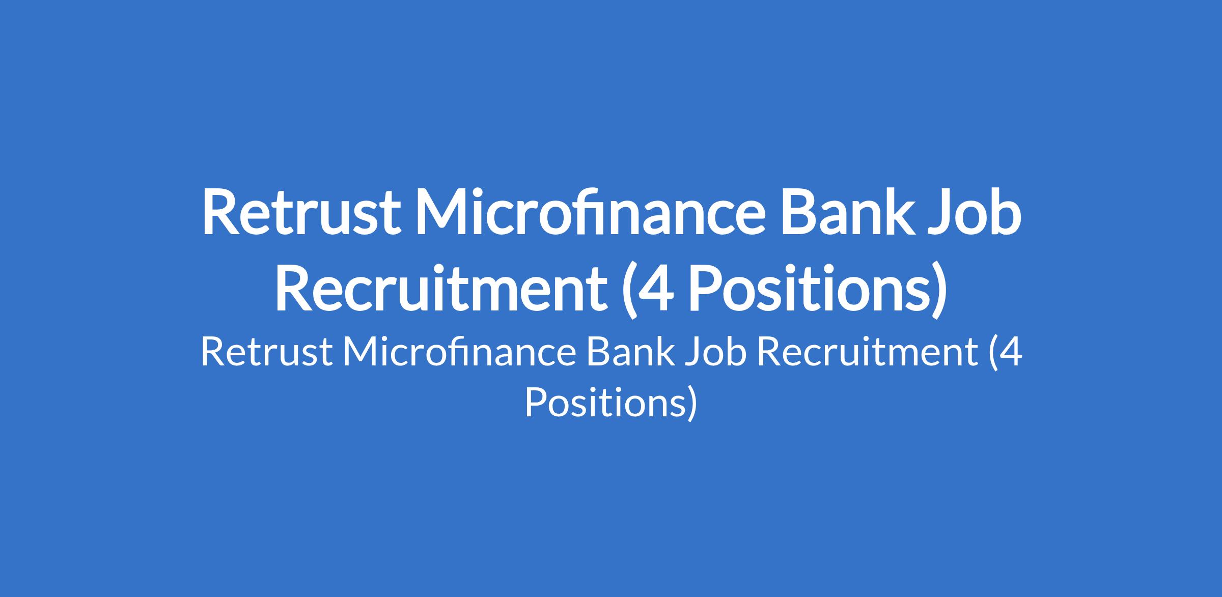 Retrust Microfinance Bank Job Recruitment (4 Positions)