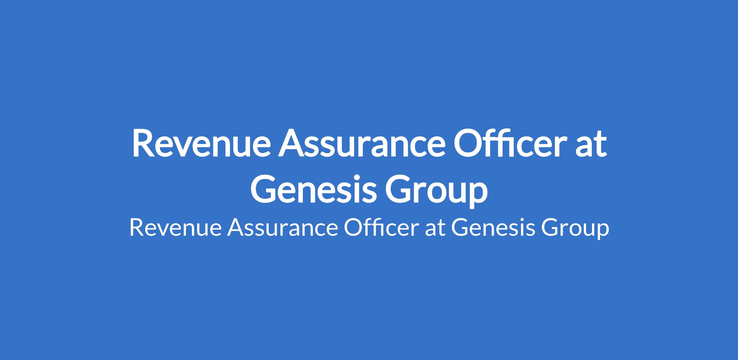 Revenue Assurance Officer at Genesis Group